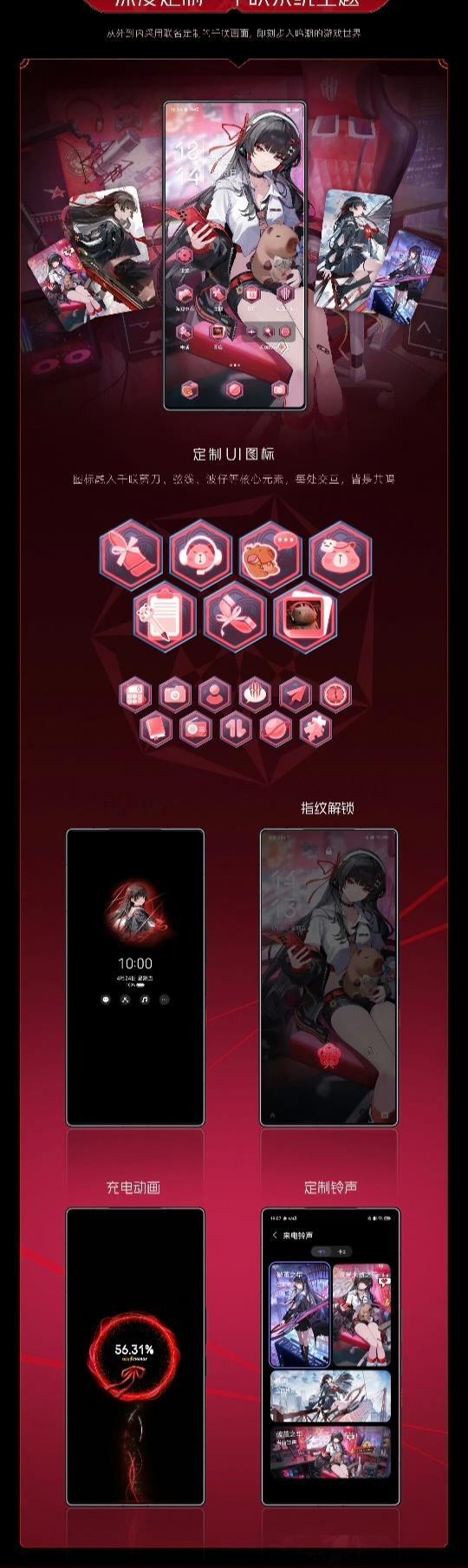 定制主题的壁纸、UI、息屏显示、指纹解锁、充电动画和铃声等都很帅