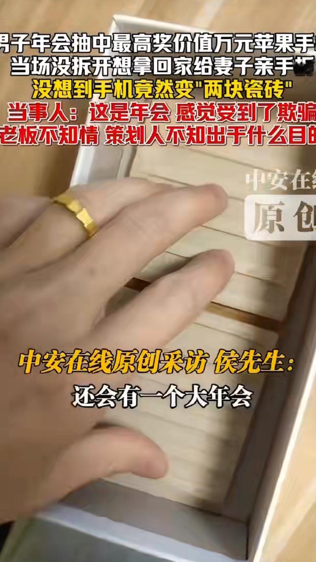 有个年会上的“乌龙事件”在网上炸开了锅,广东珠海有位小伙在单位年会上抽中了特等奖,奖品是台新款手机,结果回家拆开一看,盒子里装的竟是两块瓷砖和几颗糖!这反转剧情,比电视剧还抓马。 小伙当时抽中奖后特别激动,想着回家给媳妇一个惊喜,就没当场拆开,结果等晚上一家人围坐准备见证“幸运时刻”,打开盒子那瞬间,空气都凝固了,说好的手机呢?怎么成了瓷砖?这落差感,简直像坐过山车从山顶直接栽进谷底,小伙后来接受采访时说,自己当时脑子都懵了,本来以为是运气爆棚,结果成了“运气最差”,更让他无语的是,策划年会的同事后来承认,这是他们故意设计的“整蛊环节”,目的是活跃气氛。 这事儿一传开,网友们立刻分成了两派,一派觉得策划人太过分,年会抽奖本来就是图个乐呵,结果用“惊喜变惊吓”的方式整人,换谁都得气炸,尤其是像手机这种贵重奖品,中奖者肯定提前在心里规划好了用途,比如给家人换新手机、犒劳自己,结果空欢喜一场,心理落差太大了,另一派则觉得小伙“太较真”,不就是个玩笑嘛,何必上纲上线?但仔细想想,这种“整蛊”真的合适吗?年会是为了增强团队凝聚力,不是让员工当众出丑的,用虚假奖品消耗大家的信任,反而可能适得其反。 其实类似的事儿不是第一次发生。比如安徽芜湖有家公司年会,一位员工先刮彩票中了10万现金,后来又被领导喊上台抽特等奖,结果又抽中了自己,拿走一台顶配苹果手机,这双重好运让全网羡慕到“变形”,但人家那是真中奖,和珠海这位小伙的“假惊喜”完全两码事,真奖品带来的是实实在在的快乐,假奖品只会让人觉得被戏弄。 说到底,年会抽奖的核心是“诚意”,公司要是想活跃气氛,可以设计些无伤大雅的小游戏,比如让中奖者表演个才艺、分享个趣事,既有趣又不尴尬,但用虚假奖品当噱头,不仅伤了员工的心,还可能影响公司形象,毕竟,谁愿意在一个喜欢“套路”员工的公司长期待下去呢? 这次事件也给其他公司提了个醒:年会可以玩创意,但别玩过火,员工期待的,是一份被重视的温暖,而不是一场被设计的“闹剧”,毕竟,真诚,永远是最好的“奖品”。企业年会抽奖 年会得奖 年会奖 年会抽奖设计 男子年会抽中万元手机竟变瓷砖 事件来源:中安在线