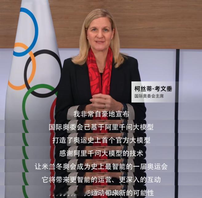 国际奥委会主席柯丝蒂·考文垂在国际转播中心举行的活动中宣布,国际奥委会已基于阿里千问大模型打造了奥运史上首个官方大模型