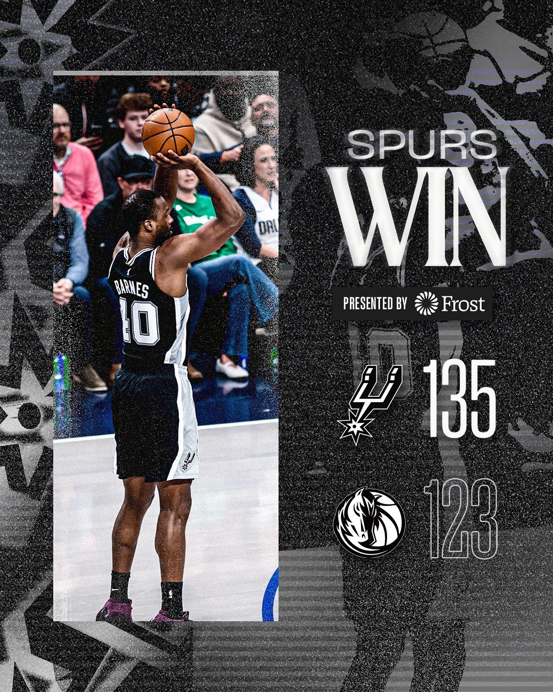 全场比赛结束!马刺客场135-123击败独行侠,拿到3连胜🎉