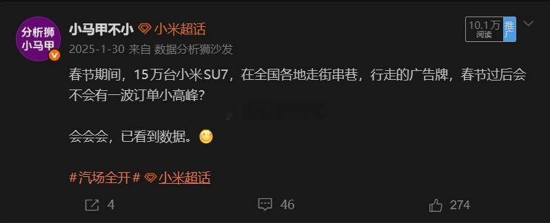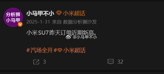 回忆一下2025年春节,小米汽车爆单的盛况。今年春节如何呢?到时候就知道了。汽场
