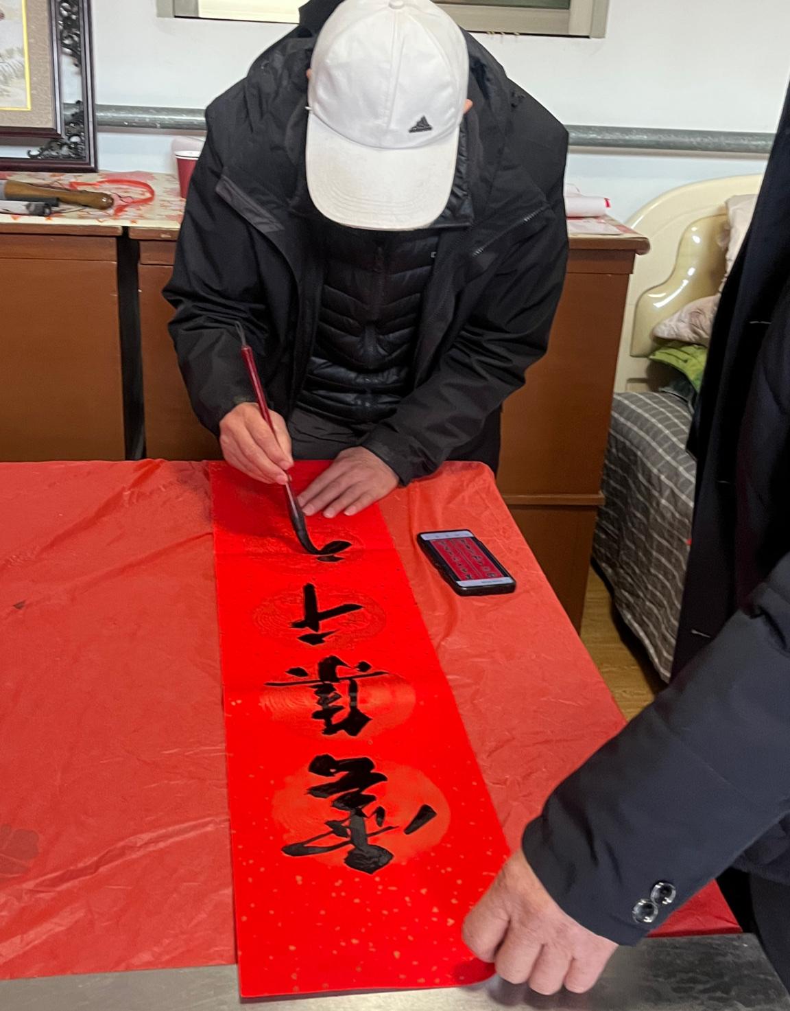 春联印刷品泛滥,好久没有见过现写的了,看到一位书法老师现写过年春联,笔墨纸砚伺候,墨香味浓浓,感觉年味也跟着一下子浓了起来[憨笑] 过年了