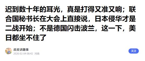 联合国秘书长古特雷斯,一句话给日本定了性。 你不是二战受害者,你是二战发起者。 七十多年的戏,幕布被一把扯下来了。 古特雷斯的讲话不是对着稿子念空话,他提到要铭记1945年8月6日的教训,说核武带来的灾难从来不是凭空发生的,根源是战争本身。这话听着实在,其实相当于当着全世界的面问日本:哭之前,先说说你当年都干了什么?要知道,古特雷斯的讲话是代表联合国的态度,不是个人随便说说,这一下就把日本七十多年来的伪装戳破了。 日本总想着让别人忘了,他们当年是主动挑起战争的发起者,不是无辜的受害者。从1931年开始,日本就发动九一八事变,占了中国东北全境。1937年又搞七七事变,开始全面侵华,之后还把战火烧到东南亚多个国家。 在这些侵略战争里,日本干下的坏事数都数不清。 在中国,日军制造了惨绝人寰的南京大屠杀,短短六周里,超过30万无辜百姓被杀害,不管老人小孩都没能幸免。他们还在华北搞“三光”政策,烧光房子、抢光粮食、杀光百姓,制造了一个个无人区。抚顺平顶山惨案里,3000多名村民被集体屠杀,之后还焚尸灭迹。 日军还搞细菌战、毒气战,731部队用活人做实验,在战场上投放毒气弹,让很多军民痛苦死去,这些都是有史料记载的铁证。 在其他亚洲国家,日本同样犯下滔天罪行,抢夺物资、屠杀平民,给各国人民带来深重灾难。 整个二战期间,光中国就有3500多万军民伤亡,其他受害国家的伤亡人数也不计其数。日本当年的这些行为,完全是侵略战争的典型表现,这是国际社会公认的事实,不是日本想否认就能否认的。 可日本偏偏不承认这些罪行,反而一直装受害者。他们在教科书里动手脚,把“侵略中国”改成“进入大陆”,删除南京大屠杀、强征“慰安妇”这些史实,就是想让本国年轻人忘了祖先干过的坏事。 一些日本政客还经常去参拜靖国神社,那里供奉着二战甲级战犯,这就是在为侵略行为招魂。日本之所以会遭遇原子弹轰炸,根本不是什么从天而降的横祸,是他们自己不认错、不投降逼出来的。当年盟军已经发布《波茨坦公告》,督促日本无条件投降,可日本根本不当回事,还喊着要“玉碎”抵抗。 为了尽快结束战争,减少更多人的伤亡,美国才在广岛、长崎投下原子弹,这是日本侵略战争带来的必然结果,自作自受一点都不为过。 现在古特雷斯的讲话,其实是说出了国际社会的心声。 这些年,越来越多的国家和人民看清了日本的真面目。俄罗斯公布了731部队人体实验的解密文件,日本国立公文书馆也不得不公开了侵华日军部队的留守名簿,这些史料都在不断印证日本的侵略罪行。 印尼前外长批评日本增加防卫费,违背了不做军事大国的承诺,马来西亚前总理也提醒日本,战争解决不了问题,别再挑衅。 日本要是真的想追求和平,就该停止装受害者的表演,老老实实地承认自己当年发动侵略战争的罪行,向所有受害国家和人民道歉。 可现在的日本,不仅不认错,还在不断扩充军备,修改和平宪法,突破“专守防卫”的原则,甚至在台湾问题上指手画脚,这些行为都让亚洲邻国和国际社会感到警惕。七十多年来,日本靠着伪装受害者骗了不少同情,但古特雷斯的一句话,把这层幕布彻底扯了下来。 历史就是历史,不是靠演戏就能篡改的。日本当年干下的侵略勾当,有无数史料和证人作证,永远也抹不掉。 希望日本能明白,只有正视历史、承认罪行,才能真正获得受害国家的原谅,才能走上和平发展的道路。 如果一直抱着“历史健忘症”不放,继续美化侵略、回避责任,最终只会遭到全世界的反对,没有好结果。毕竟,公道自在人心,谁是二战的发起者,谁是真正的受害者,全世界人民都看得明明白白。