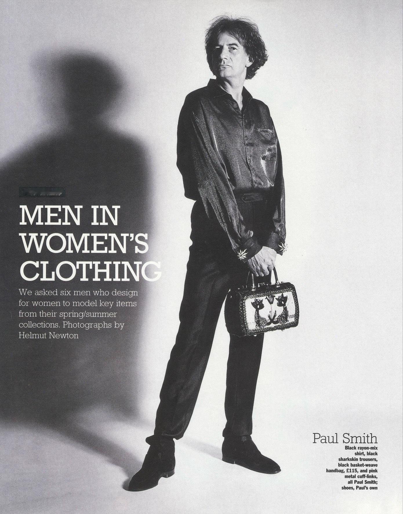 法国版《Marie Claire》1996年2月刊,请来 Paul Smith、John Galliano、 Joseph、John Rocha、Philip Treacey及Manolo Blahnik 穿上他们自己设计的女装拍摄了一组时装大片,由著名摄影师Helmut Newton 掌镜拍摄。