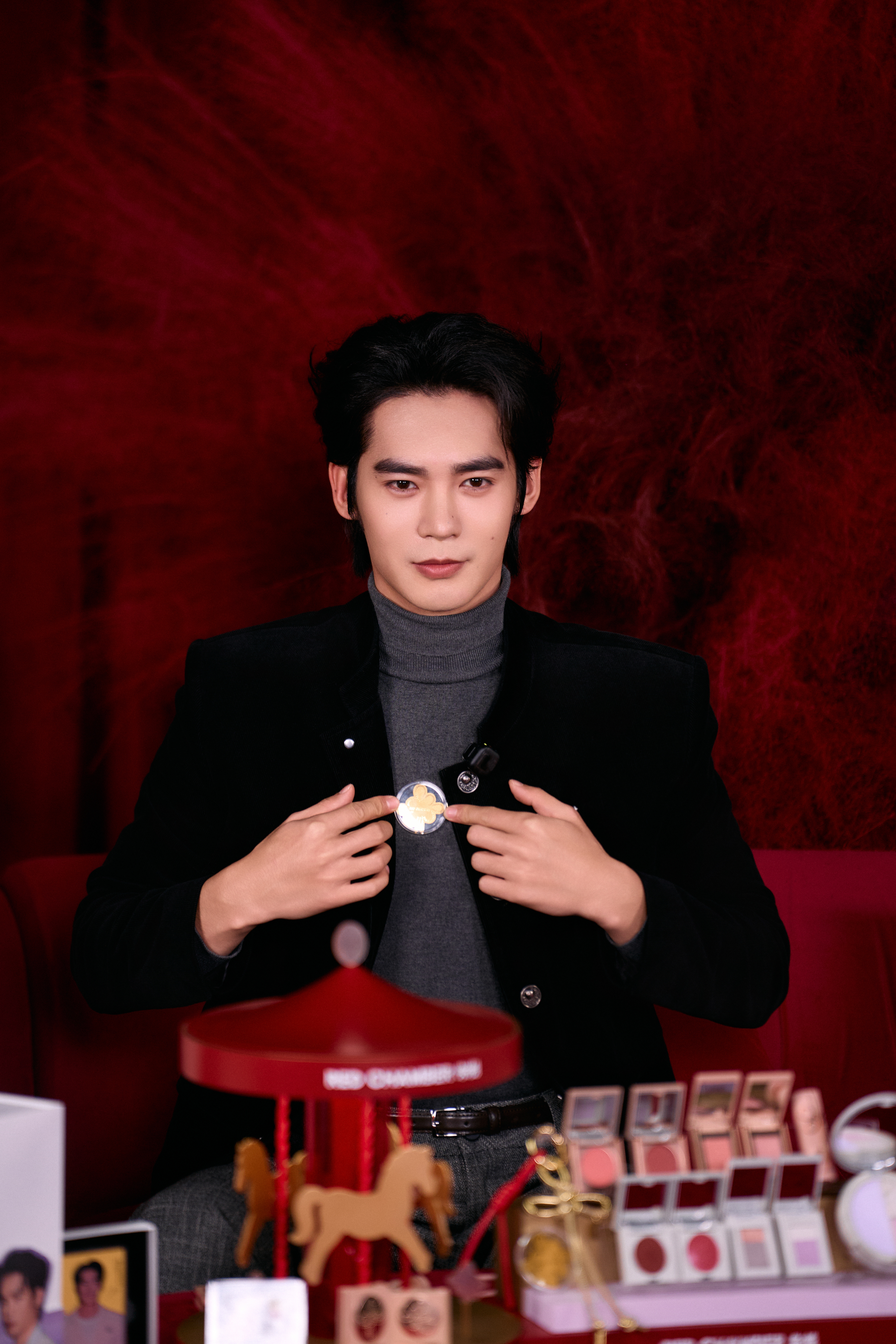 于适 × RED CHAMBER 直播大片,品牌代言人一袭灰色高领衫搭配纯黑夹克外套亮相,优雅简约,定格纯粹时刻,帅得很轻松啊~✨