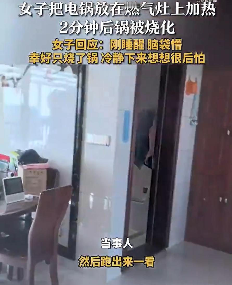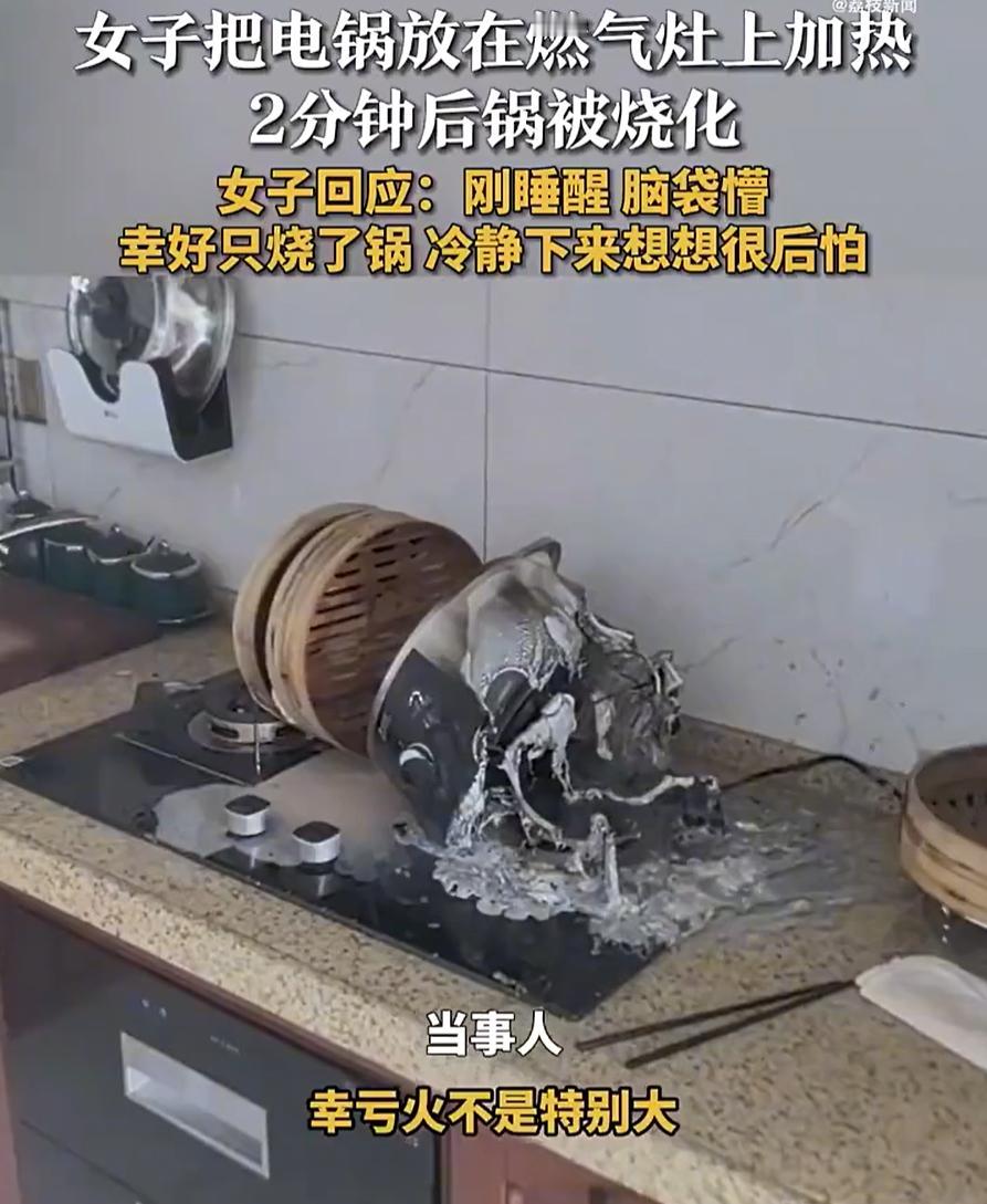 “太吓人了!”江苏镇江,女子早上起床后,随后就把锅放到燃气灶上加热,可两分钟不到,就闻到一股烧焦的味道,回头一看发现锅都被烧化了,她这才反应过来,加热的锅其实是电锅,回想起来也是后怕不已 当天早上,女子起床后还迷迷糊糊的,她看到厨房台面上放着一只锅,里头还盛着些吃的,也没细看,顺手就把锅放上了燃气灶,拧开了火 然后她转身就去洗漱了。也就两分钟左右,一股刺鼻的烧焦味从厨房飘出来 她赶忙跑回去,眼前的景象让她心里一紧,灶台上的锅竟然烧起来了,火苗裹着锅体,部分锅身已经熔化变形,黑烟直冒。她瞬间清醒,赶紧接水把火扑灭 事后她回想,自己当时没戴眼镜,也没完全睡醒,看到锅里有东西,下意识地以为是平时用的那口铝锅,习惯性点了火。但实际上,那口锅是电锅,根本不适用明火加热。电锅的塑料部件和涂层遇到燃气灶的高温,迅速熔化、起火 女子说,看着烧毁的锅,那一瞬间的视觉冲击真把她吓到了。现在想想非常后怕,幸亏发现得还算及时,火没烧大,只毁了这一个锅。要是再晚几分钟,或者火势蔓延到别处,后果不敢想 对此,有不少网友批评女子,但我觉得这事也不能完全怪她 很多人家里厨具越来越多,各种功能的锅具摆在厨房,有些是电磁炉专用,有些是明火专用,混着用就有风险。特别是那种带塑料手柄、底部有涂层的电锅,绝对不能在燃气灶上用 早晨起床,尤其是没睡够或者赶时间的时候,意识确实会有些迟钝。这种时候,涉及水、电、火的操作,真得多留个神。简单几个习惯就能避免大麻烦:戴上眼镜看清楚、确认锅具类型、点火后尽量不要离开厨房 所以,别小看那些看似不起眼的细节,它们决定了我们日常生活中的安全。每个人都有过一些疏忽大意的瞬间,但从这些小事中汲取教训,才能真正避免更大的麻烦