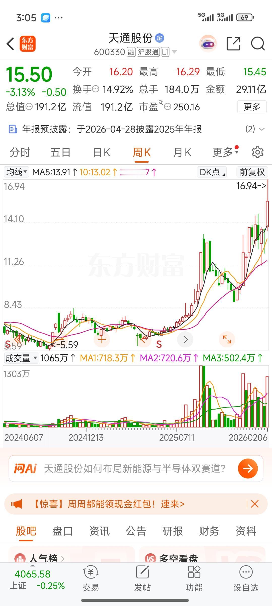 天通股份今日继续调整,成交量稍有缩减。昨日股价触碰5日线后迅速收回,今日则始终受5日线压制,维持调整态势。 从短线来看,预计要到下周初,或许还需调整个一两天,才会选择方向、开启行情。目前我仅持有四分之一的仓位,就先拿着,看看是否有涨至20元的可能。 我持有的电广传媒一直没动,在高位买入后,起初短期获利,随后便陷入套牢。我没能力做T,不过持有它的逻辑并未改变,所以今天依旧继续拿着。因为其投资收益有望在2026年爆发,众多商业航空航天股可能会上市,我认为这对,骨节会起到一波又一波的推动作用。 天普股份 天普股份龙虎榜 天沃股份 天通卫星通讯 润通股票 天宜股份 天孚通