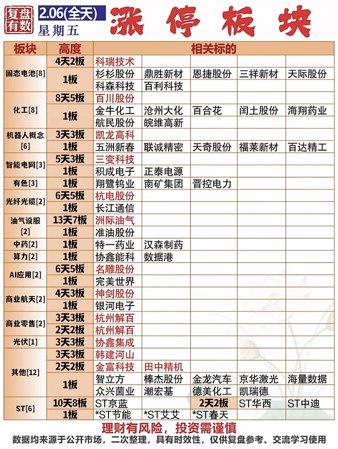 热点题材整理:2.6周五必看板块分析 机器人、光伏、化工热点轮动,多股涨停;并