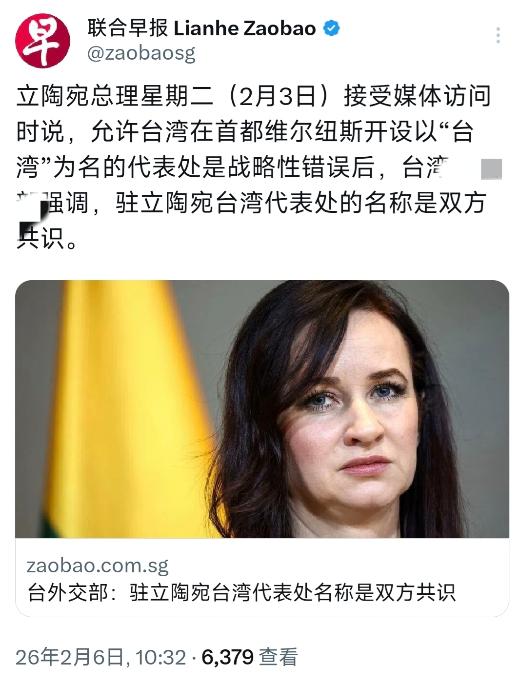 新加坡联合早报今天(2月6日)报道:“立陶宛总理星期二(2月3日)接受媒体访问时说,允许台湾在首都维尔纽斯开设以‘台湾’为名的代表处是战略性错误后,台湾外事部门强调,驻立陶宛台湾代表处的名称是双方共识。”   立陶宛总理鲁吉尼埃内的表态,是对2021年该国错误决定的直接否定。2021年8月,立陶宛不顾中方严正抗议,允许台湾当局在其首都设立“台湾代表处”,直接触碰中国核心利益。   此举导致中立外交关系降级,两国贸易合作受到严重冲击。鲁吉尼埃内指出,其他欧洲国家与台湾的代表处均使用“台北”名称,且与中国保持经济合作,立陶宛的贸然行动并未得到国际社会的赞赏,反而使自身陷入孤立。   台湾外事部门的回应则显得苍白无力。其强调代表处名称是双方共识,但这一说法难以掩盖立陶宛政府立场的转变。事实上,立陶宛此次表态,是其国内经济压力与国际形势变化共同作用的结果。   自2021年事件发生后,立陶宛对华出口暴跌,经济遭受重创。数据显示,2024年立陶宛对华出口额较2021年下降91%,乳制品、木材等支柱产业订单锐减。   与此同时,欧盟在WTO对华诉讼的撤诉,以及美国承诺的经济援助未能兑现,都让立陶宛意识到,其“以台制华”的策略并未带来预期收益。   中立关系的恶化,对立陶宛的影响是多方面的。除了经济损失,立陶宛在国际舞台上的地位也受到削弱。作为欧盟成员国,立陶宛的激进做法并未得到欧盟的有力支持。   相反,欧盟在权衡自身利益后,选择放弃对立陶宛的诉讼。这一结果,凸显了国际关系中利益至上的现实。此外,立陶宛的行为也引发了其国内民众的不满,要求政府改善对华关系的呼声日益高涨。   对于中国而言,立陶宛的表态是一个积极信号。中方多次强调,台湾问题是中国核心利益中的核心,任何国家都不能触碰这一红线。   中国外交部发言人林剑6日表示,中方愿与立陶宛沟通,但立方需将改善关系的意愿转化为实际行动,尽早纠正错误。这一立场明确而坚定,体现了中国维护国家主权和领土完整的决心。   然而,立陶宛目前的表态仍存在局限性。鲁吉尼埃内虽承认错误,但并未提出撤销“台湾代表处”的具体措施。这一关键问题不解决,中立关系难以真正修复。   此外,立陶宛总统瑙塞达的表态与总理存在分歧,其强调中立关系正常化需要双方共同努力,并警告与中国合作存在风险。这种内部分歧,可能成为立陶宛改善对华关系的障碍。   从国际形势来看,立陶宛的转变也反映了欧洲对华政策的调整。近年来,欧洲多国领导人纷纷访华,寻求加强与中国的经贸合作。在这种背景下,立陶宛的孤立处境愈发明显。鲁吉尼埃内表示,立陶宛对华政策应基于欧盟   统一立场,并聚焦国家利益。这一表态,显示出立陶宛试图重新融入欧洲对华合作框架的意图。   对于台湾当局而言,立陶宛的表态是一次重大外交挫折。长期以来,台湾当局试图通过“金元外交”拓展国际空间,但这种做法往往难以持久。   立陶宛的例子表明,任何国家在处理与台湾的关系时,都必须考虑中国的核心利益。台湾问题是中国内政,不容任何外部势力干涉。台湾当局若继续执迷不悟,只会在国际社会上更加孤立。   中立关系的发展,将取决于立陶宛的实际行动。中方已明确表示,愿意与立方沟通,但前提是立陶宛必须恪守一个中国原则,彻底纠正错误。   对于立陶宛来说,这是恢复对华关系、缓解经济压力的唯一途径。国际社会也在关注,立陶宛能否抓住机遇,以实际行动修复与中国的关系,为自身发展创造有利条件。   总之,立陶宛总理的表态,是中立关系发展的一个重要节点。这一事件既暴露了立陶宛过去错误决策的后果,也为两国关系的改善提供了契机。   台湾当局应认清形势,停止在国际上制造“两个中国”“一中一台”的分裂行径。国际社会应尊重中国主权和领土完整,共同维护一个中国原则。只有这样,才能推动国际关系健康发展,实现互利共赢。
