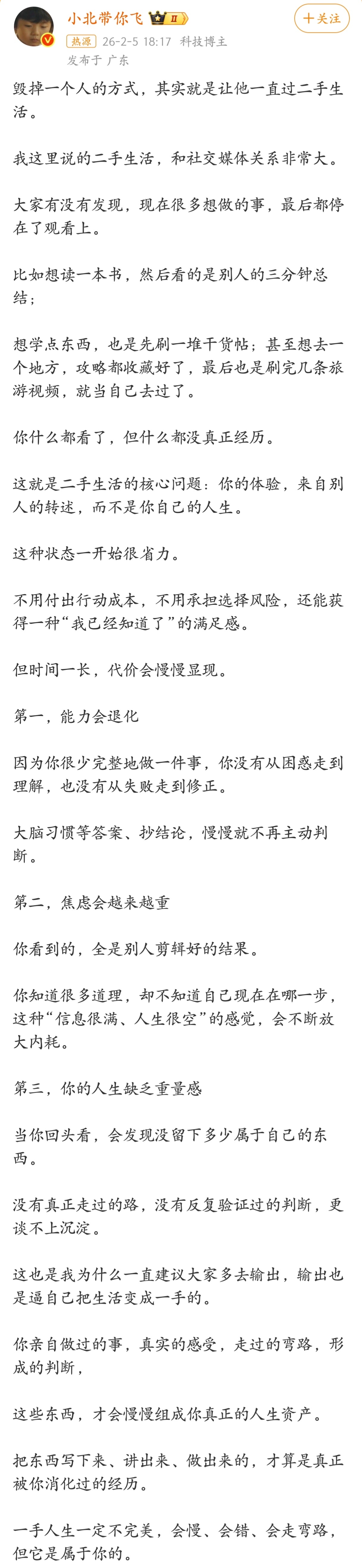 毁掉一个人的方式,其实就是让他一直过二手生活。