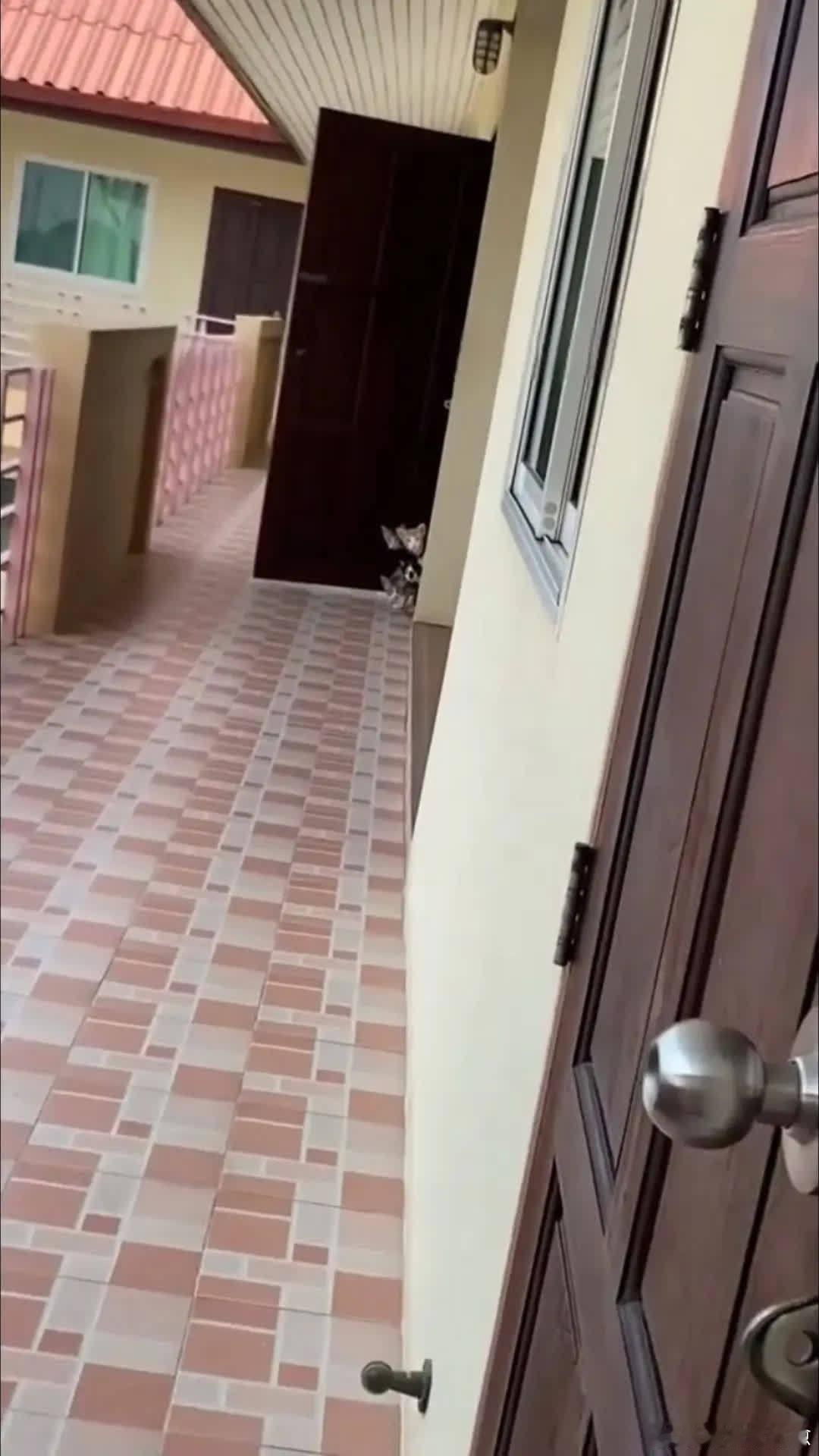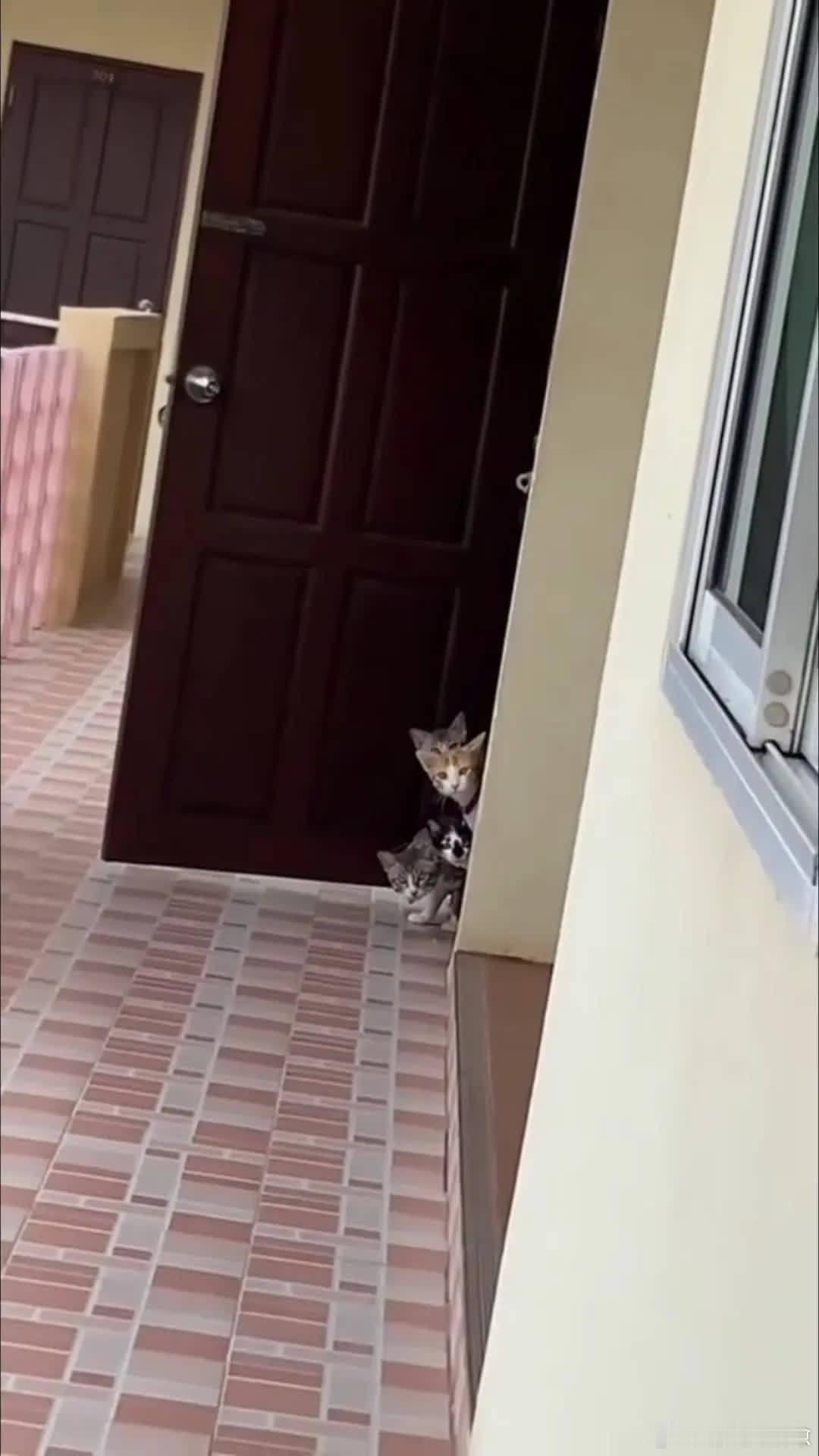 小家伙们齐刷刷在门口看着楼梯口……萌宠宠物