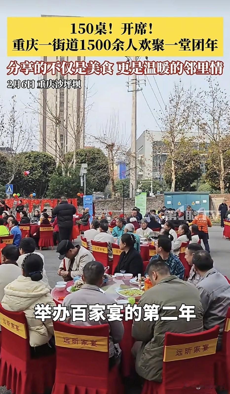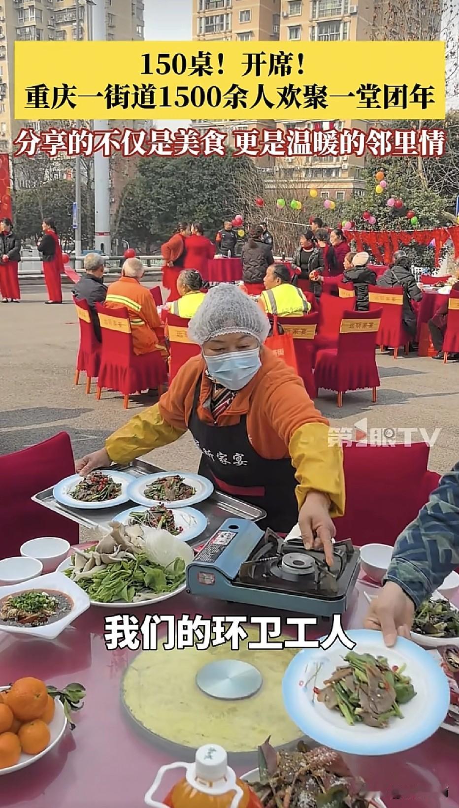 2月6日,重庆沙坪坝区联芳街道六个社区举办新春百家宴,邀请1500余名居民,包括新就业群体、环卫工人、外卖小哥等。 此次百家宴不仅是一次美食的盛宴,更是一次心灵的聚会,一次情感的融合。八方邻里齐聚一堂,共话温暖与关怀,每一道菜都承载着家的味道,每一口都是邻里间情谊的传递。(图片来源于网络侵删)