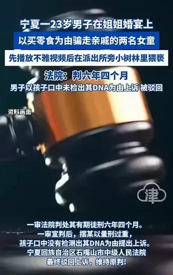 宁夏一23岁男子竟然在姐姐的婚宴上犯了罪。他带亲戚家的两个六七岁的小女孩,去买零食,把她们骗到小树林去猥亵。后来小女孩的妈妈发现女儿不停的吐口水,觉得异常,询问发生了什么?女孩讲出了实情,男子被判6年四个月。他的姐姐和姐夫也气的不行,在自己大喜的日子里,弟弟做出这种丢人现眼的事,一辈子都是晦气。