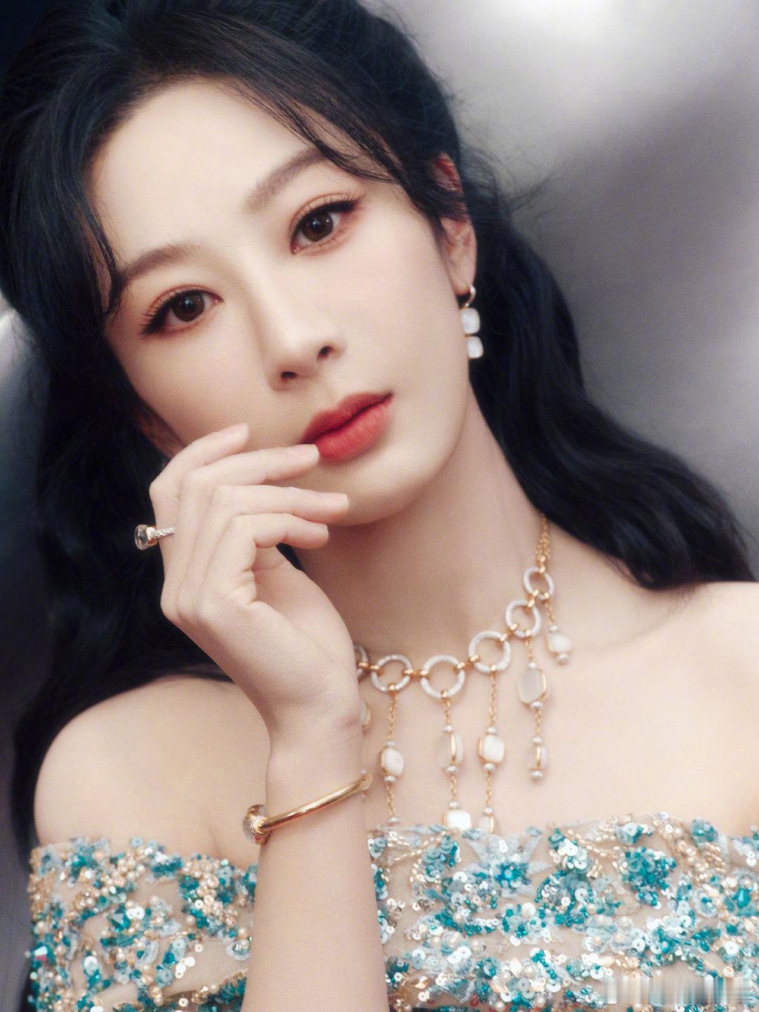 孙允珠,淡蓝色吊带长裙完美展现了她的优雅气质和身材优势。