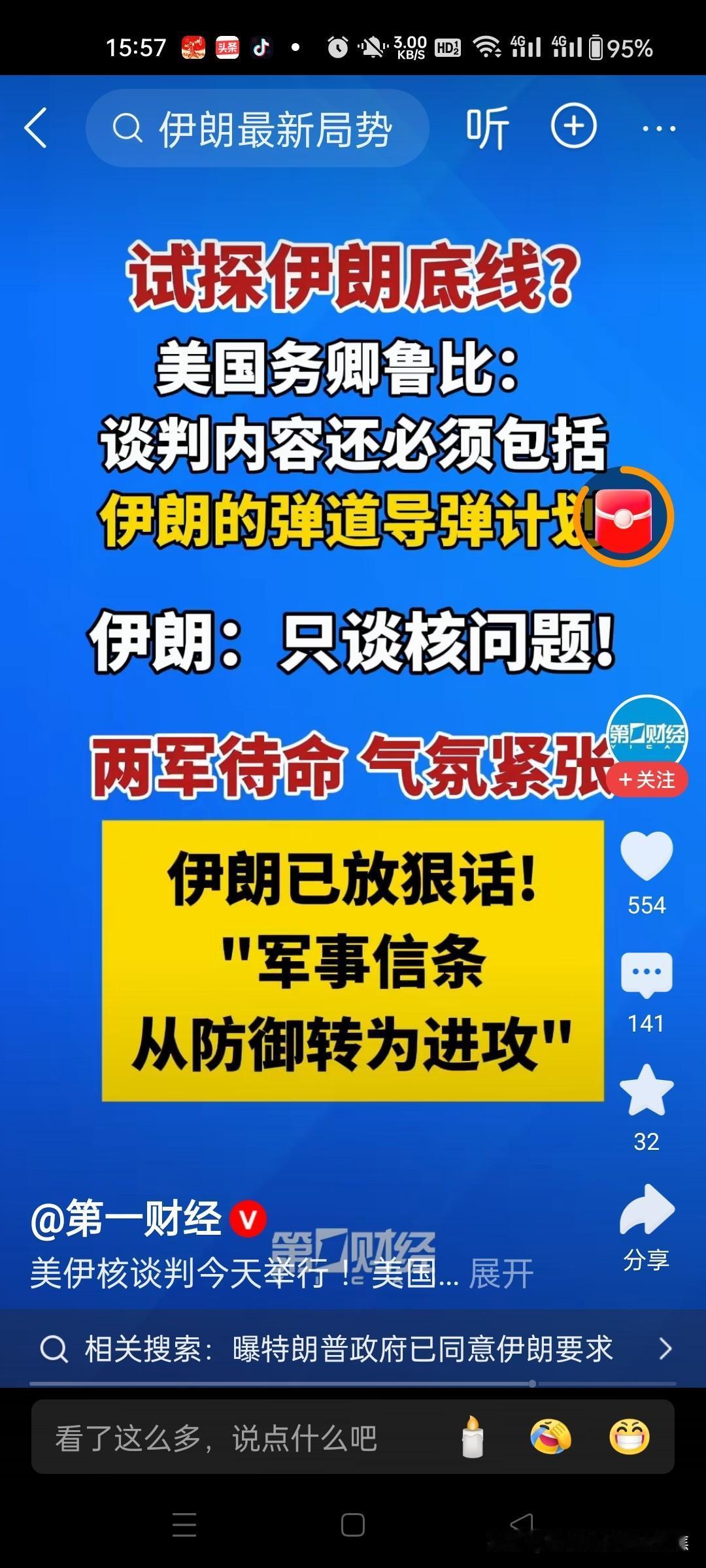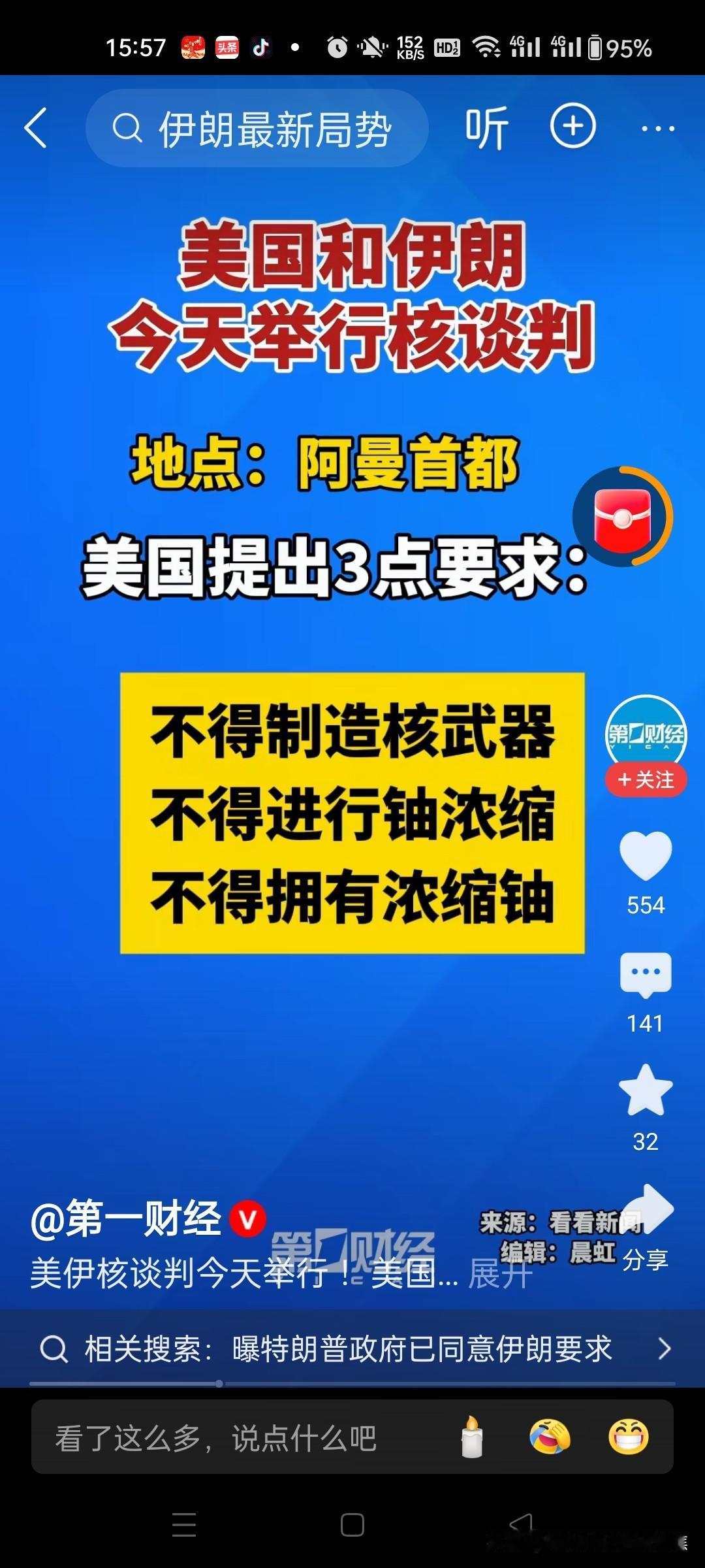 美伊重返谈判桌,多方预测双方都不“投降”难谈成,谈不成美国就开火! 立场鸿沟无妥协空间美国要求伊朗“全面解除武装”,伊朗则要求美国先解除制裁,双方都将让步视为“投降”。 美伊谈判今日于阿曼首都马斯喀特在高度戒备状态下重启,然而双方在核心议题上互不相让,军事摩擦风险仍处于临界点。 一、谈什么:核心矛盾难以调和 美国提出三项强硬要求 要求伊朗全面放弃核计划(涵盖停止铀浓缩、转移现有浓缩铀库存)、限制弹道导弹研发(尤其是射程覆盖以色列的导弹)、停止支持黎巴嫩真主党等地区代理人武装。@东营网官方微...2040 伊朗划定两条红线 仅接受讨论核问题,坚持和平利用核能的权利;明确拒绝就弹道导弹计划及地区影响力议题进行谈判,视其为国家安全底线。双方诉求存在本质冲突,谈判范围成为谈判破裂的导火索。@经观APP316东营网官方微博凤凰卫视simple不完美却最美 二、怎么谈:间接形式凸显互信缺失 阿曼充当“传声筒” 双方代表分处不同房间,由阿曼外交官传递立场,避免直接接触。选择阿曼是因其具有中立性(2015年伊核协议谈判地),且能规避美国盟友的施压。@央视网319 程序博弈消耗信任 伊朗临时要求将谈判地点从土耳其改为阿曼,并排除多国观察员,美国一度拒绝,导致谈判濒临取消,最终在9个中东国家的紧急斡旋下才达成妥协。会前,美军击落伊朗无人机、伊朗威胁扣押美油轮等事件加剧了紧张局势。@红星新闻328央视网新华国际鬼谷子兔爷红星新闻 三、能谈成吗?三大障碍注定前景黯淡 立场鸿沟无妥协空间 美国要求伊朗“全面解除武装”,伊朗则要求美国先解除制裁,双方都将让步视为“投降”。以色列提出“三不红线”(不发展核计划、导弹、代理人),进一步压缩了美国的回旋余地。@南方日报2335 历史教训削弱谈判基础 2025年6月美伊谈判期间,美军联合以色列空袭伊朗核设施,伊朗此次已提前转移铀原料。德黑兰对美国的履约能力极度不信任。@CCTV国际...322 国内压力束缚决策 伊朗保守派议员公开反对谈判,呼吁“对美以先发制人打击”;特朗普面临鹰派要求动武与盟友担忧油价飙涨的双重压力。@新京报1124南方日报老郭大白话央视网CCTV国际时讯央视网新京报 四、美国会开火吗?军事冲突风险仍高 谈判破裂或触发打击 若谈判无果,美军已拟定“新月之夜”(2月7日)为最佳空袭窗口,目标锁定伊朗5处导弹基地。以色列摩萨德局长参与美军作战会议,推动“72小时内清除伊朗威胁”。@大皖新闻3 军事部署进入实战状态 美军三艘航母在霍尔木兹海峡进行高频起降演练,伊朗革命卫队试射反舰导弹并公开地下导弹基地坐标。双方均进入“2012年以来最高戒备”状态。3417 地区国家全力阻战 阿联酋外长警告“开战将致油价飙至140美元”,土耳其、卡塔尔等9国以经济安全为由游说白宫维持对话。但擦枪走火的风险极高,尤其霍尔木兹海峡的对峙可能引发冲突。@新华国际316大皖新闻央视网 结语:僵局本质与潜在出路 当前僵局反映了美伊的战略互耗:美国试图以压促变,却忌惮战争成本;伊朗借谈判争取喘息之机,但拒绝放弃核心筹码。短期内或许能达成“冻结核活动换部分解禁”的临时协议,但全面和解需跨越主权红线与信任赤字,可能性微乎其微。@CCTV42450CCTV4梁芳教授
