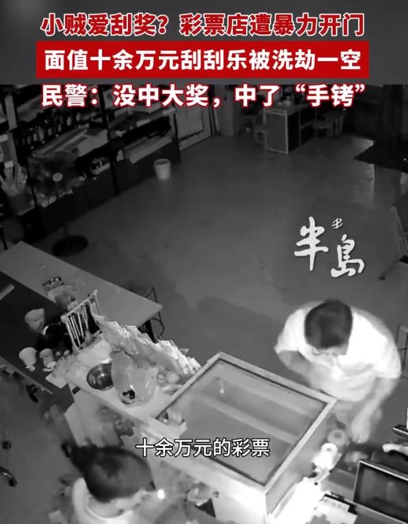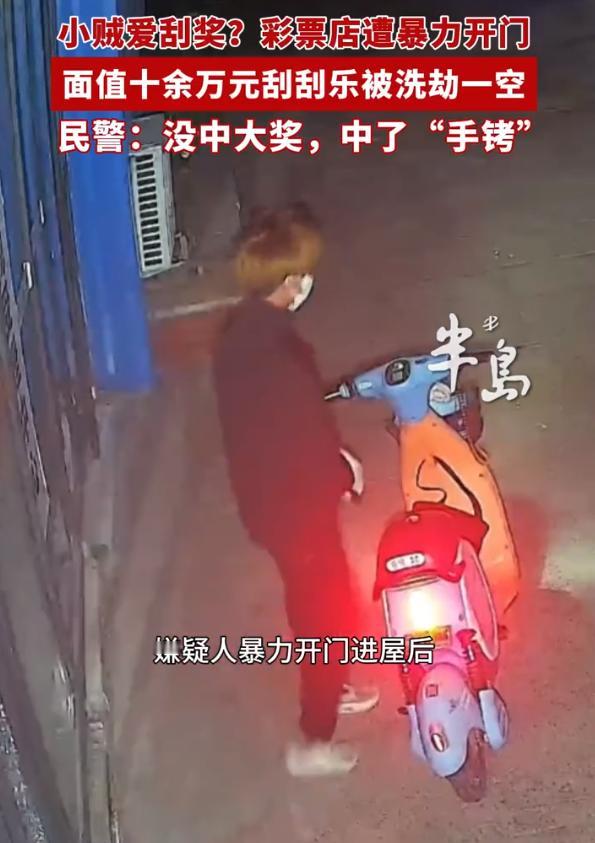 小偷偷十几万刮刮乐刮完未中大奖 青岛俩小偷破门进彩票店,偷了几百块现金,顺手扛走了十几万的刮刮乐,估计是幻想着中大奖一夜发财。 结果等警察把他俩抓获的时候,十几万刮刮乐全被他俩刮得干干净净了,好家伙,这运气真是让人没眼看啊,居然连十块都没中。 主打一个偷鸡不成蚀把米,没中大奖,反倒中了一副银手铐,纯属自投罗网。他俩算是给所有彩民刮出了一道清醒剂,十几万刮刮乐都刮不出什么,平时几块几十块买的,又能指望中啥?