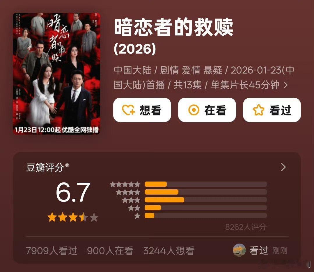【新剧开分】暗恋者的救赎豆瓣开分6.7