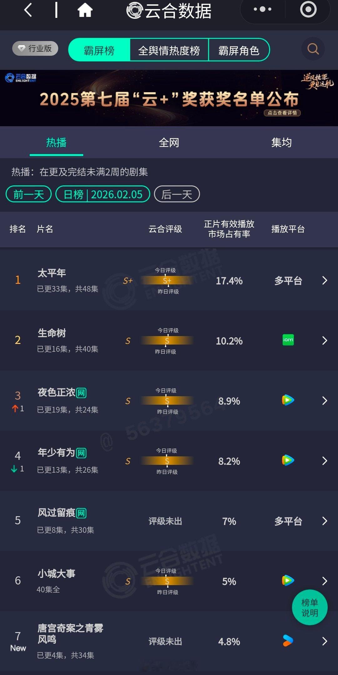 昨日云合杨紫、胡歌《生命树》10.2%龚俊《风过留痕》7%白鹿、王星越《唐宫奇案
