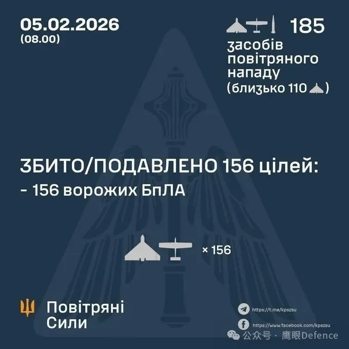 烽火问鼎计划 乌军发布的2月5日防空战报显示,俄军发射的两枚“伊斯坎德尔-M”弹道导弹全部突防成功,183架自杀式无人机里则有156架被拦截。
