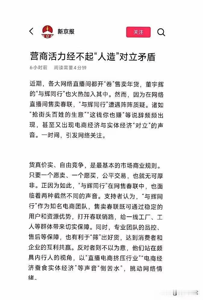 董宇辉该不该与民争利,我觉得做什么是董宇辉的自由,别人没有权利说三道四! 有人说,董宇辉最大的梦想是做个支教老师,最不愿意做的是直播带货。 其实支教顶多是造福几十个孩子, 而直播带货却能造福亿万百姓。 当然,占到商家的角度,董宇辉卖春联,是侵占了他们的利益。 可是,如果是站在消费者的角度呢?