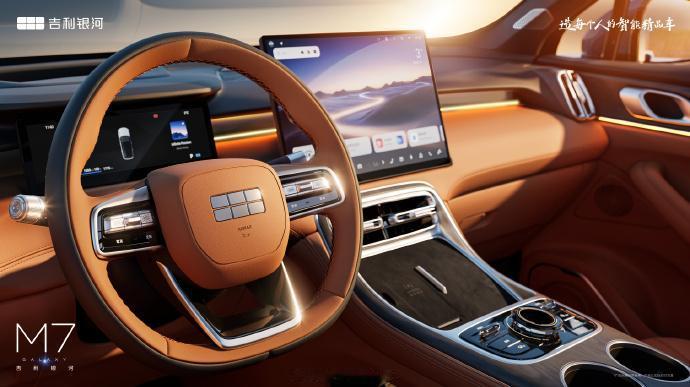 2月6日,吉利银河M7在意大利的米兰完成了全球首秀,新车采用了银河M系列家族式设计语言,封闭式格栅配合星环式贯穿灯组,算是一眼就能看出它的M系列身份,两侧的进气口配有细镀铬条装饰,看上去既精致又有一定的运动感。车身侧面咋一眼看上去大家也能感受到一些很熟悉的感觉,整体风格与银河L7非常相像,包括像是尾灯的整体造型,虽然没有明说,但银河M7似乎是银河前期车型L7的继任车型。 至于内饰还是大家熟悉的银河家族风,T型中控台配合两个大屏,中央大屏用上Flyme Auto系统,下方有物理按键控制区域以及杯架,精致度和质感都很不错,是一种很朴实的风格。 最后,银河M7采用1.5L插混系统,发动机最大功率82千瓦,配备磷酸铁锂电池,电池容量分别为18.4kWh和29.8kWh,最大纯电续航225km,综合续航1730km,馈电油耗低至3.35L/100km。【来自懂车帝车友圈】