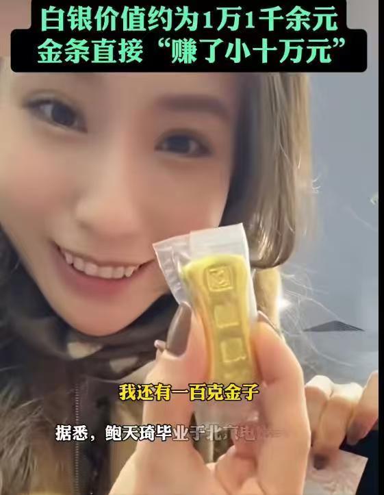 【“13年前随手存的100克黄金,如今让我赚了十万元!”女演员开箱揭晓时间魔法】 近日,女演员鲍天琦一段“开箱视频”引爆网络——她偶然打开13年前存入银行的保险箱,竟发现一笔被遗忘的财富:100克黄金、500克白银。按当前金价银价计算,这笔意外之财已增值至“小十万元”! ⏳ 一场跨越13年的“时间投资” • 2013年:白银约4元/克,黄金价格尚处低位。还是学生的她将拍戏所得换成金银,单纯想“存点实物”。 • 2026年2月6日:黄金价格重回4900美元/盎司高位,白银涨至近30元/克。当年那份无心之举,竟悄然完成一次精准的资产增值。 💰 数字背后的“睡后收益” ► 100克黄金:从当年数万元价值,如今已成硬核资产 ► 500克白银:当年成本约2000元,现价值约1.1万元,涨幅超5倍 “原来最靠谱的理财,是忘记自己在理财”,网友感慨道。 🔍 暴富偶然?不,是时代的财富逻辑 1. 实物资产的抗通胀魔力:在货币波动时代,金银成为“沉默的守夜人” 2. 长期主义的胜利:13年间经历市场多轮起伏,耐心等待终获回报 3. 年轻人财富观启示:并非刻意投资,而是将部分储蓄转化为“时间的朋友” 🌟 意外之财?更是财富管理的生动课 鲍天琦的案例看似偶然,却暗合资产配置的深层逻辑: • 适度配置实物贵金属,对冲不确定风险 如果你有一笔可以遗忘十年的闲钱,会选择如何配置? 1. 囤黄金白银,相信实物价值 2. 投入基金股市,追求更高收益 3. 买房置地,看重实用属性 4. 存银行定期,图个安心 评论区聊聊你的“财富时间胶囊”计划👇 (温馨提示:投资需谨慎,历史收益不预示未来,理性配置资产哦!) 娱乐聚焦 基金