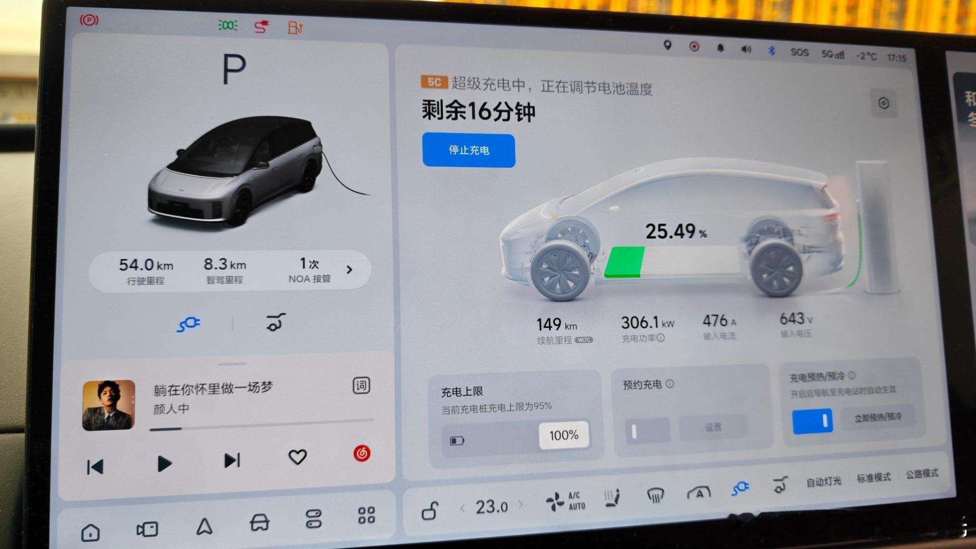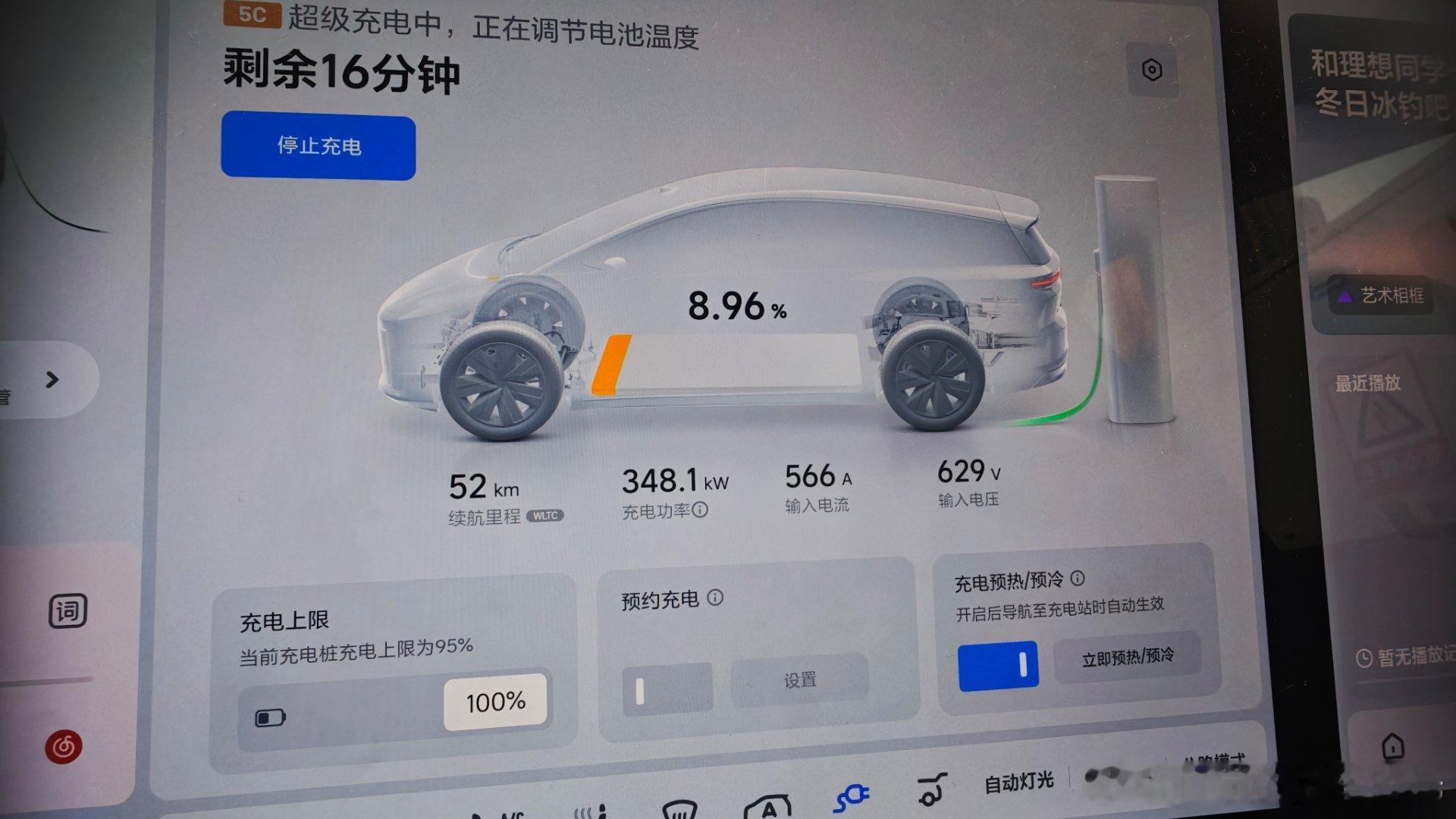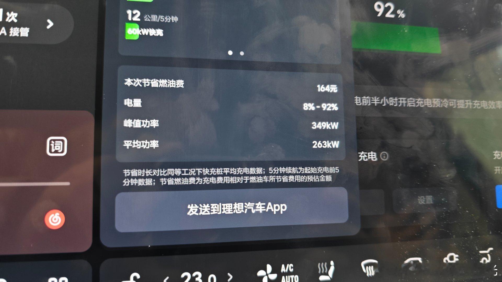 体验了一把500kw的理想5C,这个天气能充到340kw,从8%充到92%用了18分钟。记住一定要导航到5C,这样来的路上车可以自己预热电池,要不然凉电池得等热起来,功率减少很多。白宁的理想i8