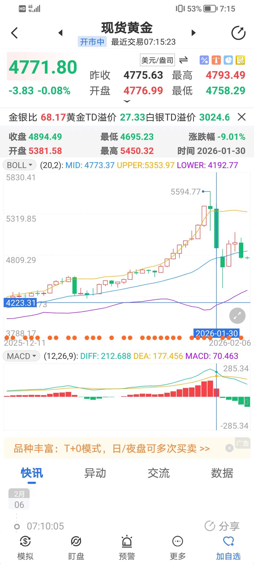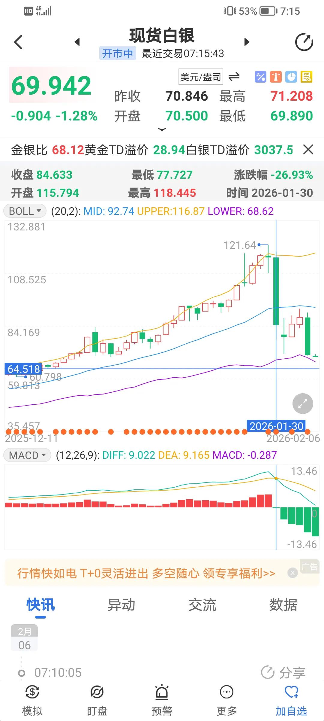 细思很不正常,我决定清仓。以前黄金白银回调,只不过是小打小闹而已,不会跌得很离谱的,心理能承受得住的,不像现在,一根直通地狱的大阴线,一跌就是9%,一跌就是26%,而是没涨几天又跌回去,不见回光返照的迹象,很不正常,我觉得黄金白银牛市到此宣告结束,中途涨的只不过是下跌途中的反弹而已,我决定清仓所有黄金白银。