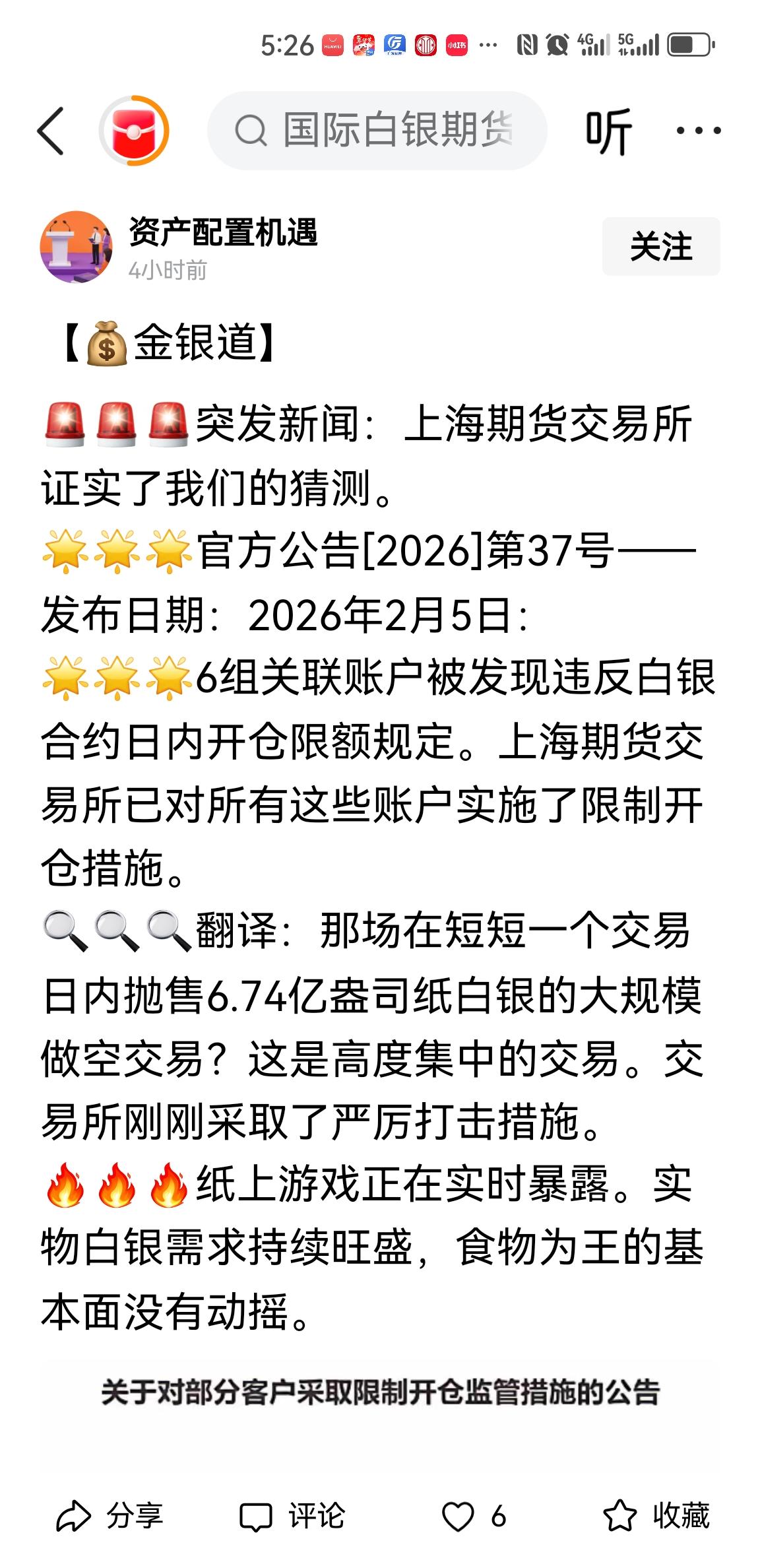 🚨独家深挖:上期所白银做空案细节曝光!定价权博弈进入白热化—— 🔍违规做空内情全拆解 这次被上期所处罚的6组关联账户,绝非普通投机者。从交易数据看,它们通过实际控制关系账户组,在日内集中并影响其他散户合计抛出6.74亿盎司的天量空单,精准砸盘关键交易时段。 这一行为直接触发了上期所《异常交易行为管理办法》第16条的监控红线。这类操作的核心特征是: - 账户联动:6组账户同步行动,规避单一账户限额,形成合力砸盘 - 精准打击:在流动性较弱时段集中抛单,放大市场恐慌效果 - 内外呼应:做空时点与伦敦、纽约白银合约的异动高度吻合,疑似与外部势力形成跨市场配合 市场普遍认为,这是一次有组织的“内鬼+外资”联合做空行动,目标直指中国正在争夺的白银定价权。 📊价格走势研判:上期所与伦敦纽约将加速脱钩 1. 短期走势(1-2周) 上期所的监管出手将直接扭转白银价格的短期颓势。限制违规账户开仓后,恶意做空力量被大幅削弱,叠加国内实物白银的强劲需求支撑,上期所白银合约将率先企稳反弹,而伦敦、纽约市场仍受国际空头压制,价差将快速拉大。 2. 中期走势(1-3个月) 随着监管持续高压,国内白银定价的独立性会越来越强。上期所可能进一步提高违规成本,比如增加保证金、扩大监控范围,这会让内外勾结的做空行为风险剧增。 而伦敦、纽约市场则面临美元流动性收紧和地缘政治冲突的双重扰动,价格波动会更剧烈,两地价差可能扩大至历史高位。 3. 长期逻辑 这场定价权博弈的本质,是中国用“实物需求+监管铁拳”对抗国际资本的“纸面操纵”。只要国内实物白银的消费和储备需求持续增长,上期所的价格就会成为全球白银的“锚”,最终实现从跟涨到引领的转变。 ⚔️杀一儆百!定价权保卫战没有退路 这次处罚不仅是对6组账户的警告,更是向所有试图操控中国市场的势力发出的明确信号:金融安全是国家安全的底线,任何内外勾结的行为都将付出沉重代价。 未来,上期所必然会推出更严格的监管措施,比如穿透式核查账户实际控制人、限制高频交易、引入“大鳄条款”,用制度性优势筑牢定价权的护城河。 ⚠️ 免责声明 本文仅为个人基于公开信息的观察与分析,作者并非金融专业人士,不具备投资咨询资格。文中观点不构成任何投资建议,不代表任何机构立场。市场有风险,投资需谨慎,请您独立判断并自主决策。 白银定价权 上期所 金融战 内鬼现形