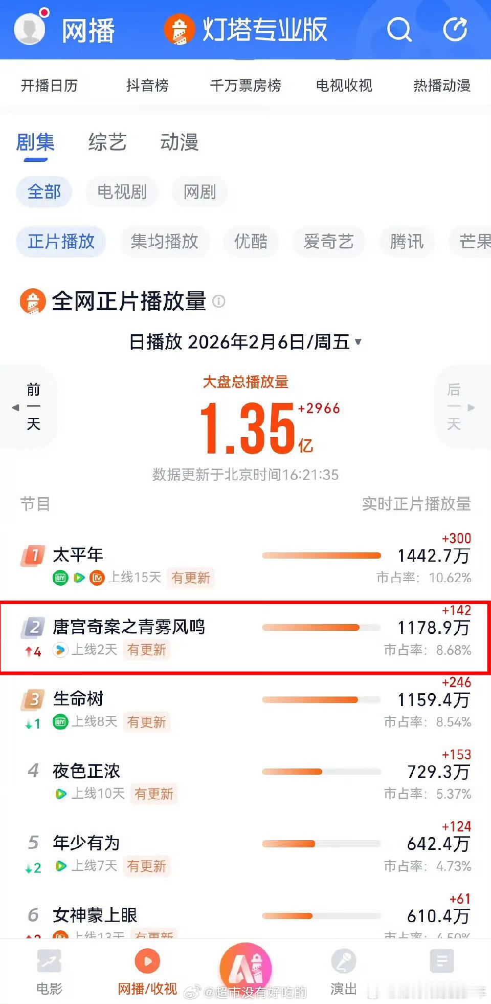 唐宫奇案云合4.8%白鹿唐宫奇案灯塔来到第二了,杨紫这生命树也太扑了不会1500