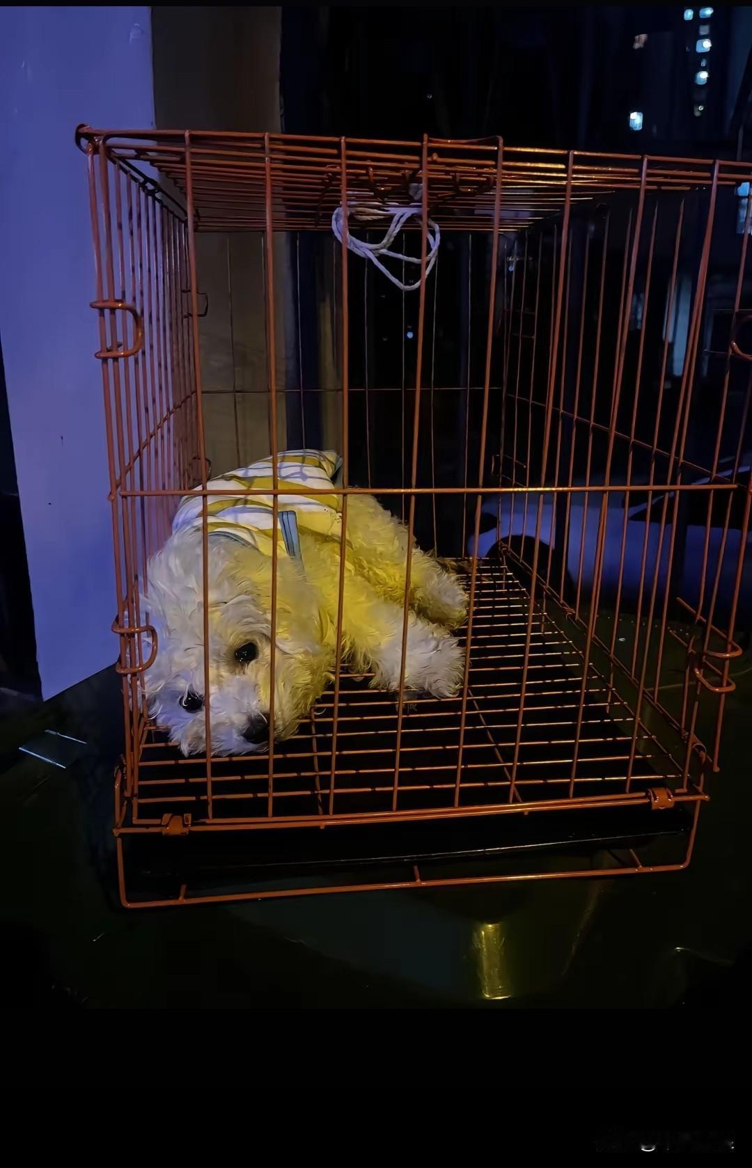 病恹恹的小泰迪,被狠心的主人连笼带狗一同扔在垃圾桶旁。下方散发着刺鼻的臭味,只剩半条命的小泰迪忍受着病痛的折磨,无比无助地趴在狗笼里,静待命运的安排。生病的泰迪