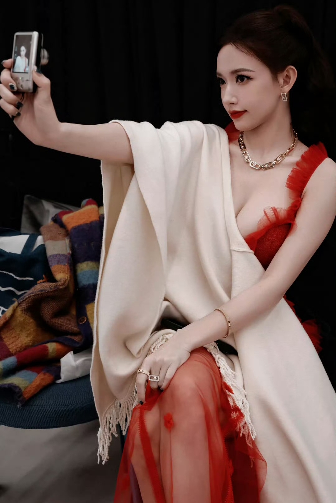 浅透的纱裙穿在她的身上真是把好身材体现的淋漓尽致