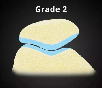 Ⅱ 级(软骨纤维化)——软骨表面出现裂纹或纤维化,范围小于 1.3 厘米,症状为行走或下蹲时疼痛加重,可能伴关节弹响;