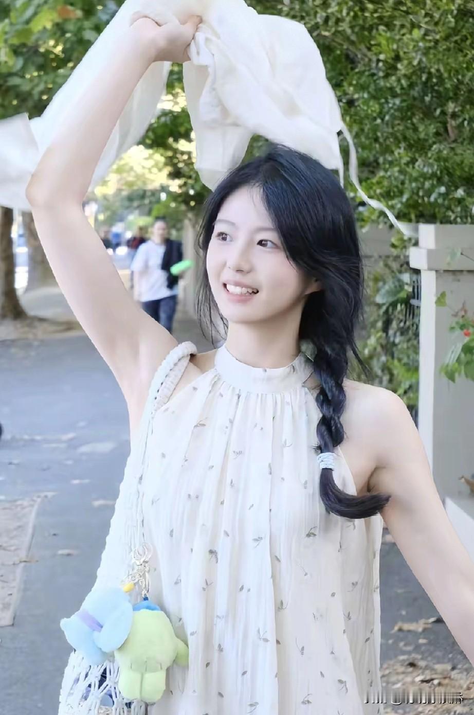 清新穿搭,白色背心+卡其色短裤,搭配自然风景,元气满满!
