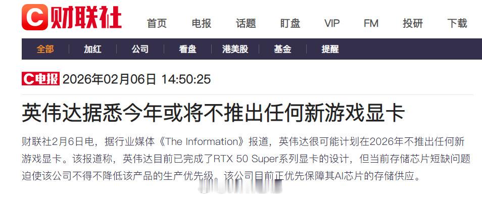 今年的游戏硬件市场怕是要迎来一段平淡期了,因存储芯片短缺问题,英伟达今年将不会推出任何新游戏显卡,甚至可能波及到下一代 RTX 60 系列,本来是原定于 2027 年底投入量产,现在发布时间预计也将延后。