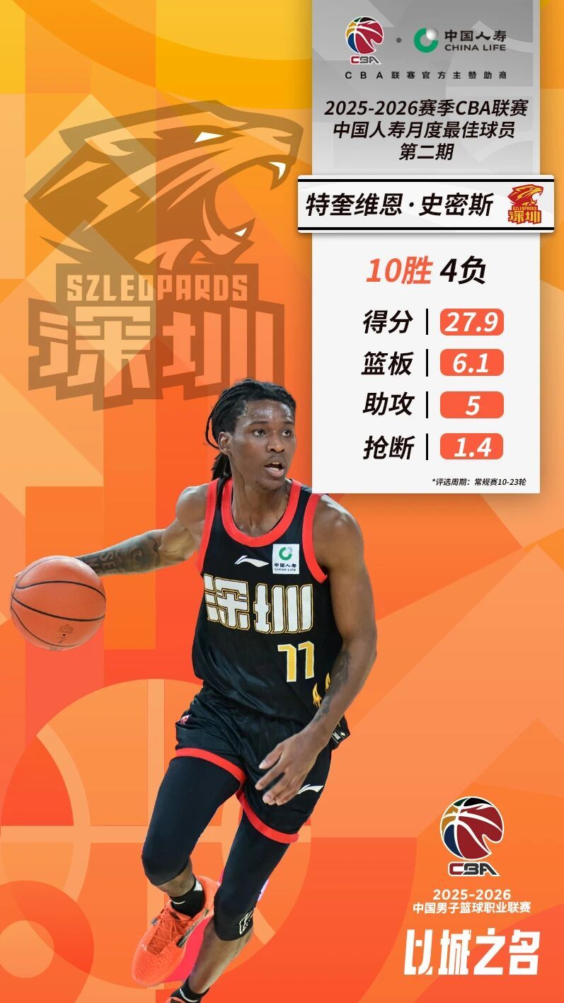 深圳男篮包揽月最佳本土球员+外援!月度最佳防守莫兰德庞峥麟蝉联月度最佳新秀!