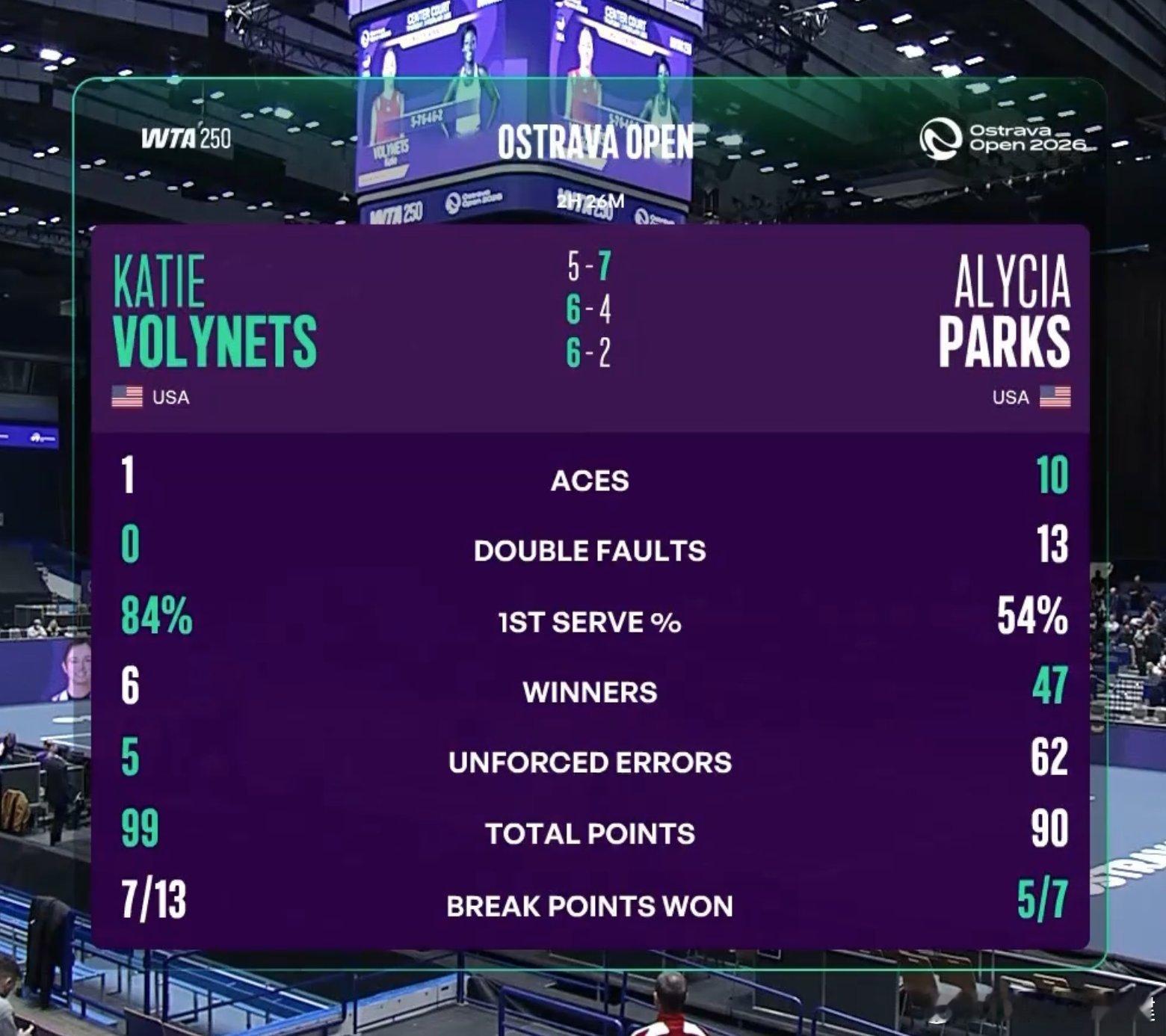俄斯特拉发这场比赛:帕克斯47制胜分、62个UE,对手沃利内茨6制胜分、5个UE这很澳网澳网2026