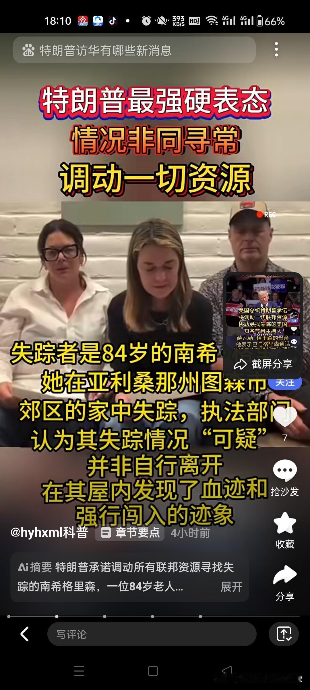 美国总统特朗普找人调动一切资源找人 暖心的总统,有时候很靠谱,特靠谱,有时候不靠谱,特不靠谱。 特朗普调动一切资源找人2月4日消息,针对美国“今日秀”节目联合主持人萨凡纳·格里森的母亲南希·格里森失踪一案,美国总统特朗普4日承诺,将调动一切资源确保格里森母亲安全回家 事件核心信息 发生时间: 2026年2月4日(报道时间)。 人物: 南希·格里森: 美国著名晨间节目《今日秀》联合主持人萨凡纳·格里森的母亲。她是本案的失踪者。 唐纳德·特朗普: 当时的美国总统。 事件: 南希·格里森女士失踪。 美国总统特朗普在得知此事后,于2月4日公开承诺,将调动联邦政府的一切可用资源,全力协助寻找南希·格里森,确保她能安全回家。 背景: 萨凡纳·格里森作为全美知名的媒体人,其母亲失踪的消息引起了广泛关注,也促使总统层面做出回应。 对当前情况(2026年2月6日)的说明 您查询的这条信息发布于两天前(2月4日)。它记录了特朗普总统当时的承诺和表态。 截至今天(2026年2月6日),基于您提供的信息,尚没有关于此案的最新进展或结果。也就是说: 我们不知道南希·格里森女士是否已经找到。 我们不知道特朗普总统具体调动了哪些资源(如FBI、地方执法部门协作等)以及搜寻工作的具体进展如何。 我们不知道案件本身是否有新的线索或嫌疑人信息。 总结 这条信息的核心是报道了特朗普总统在2026年2月4日对萨凡纳·格里森母亲失踪案做出的积极回应和援助承诺。它反映了该事件在当时引起了高层的重视。然而,由于该承诺刚刚作出不久(仅过去两天),案件的实际进展和最终结果需要关注后续的新闻报道或官方发布。 建议: 如果您特别关心此案的后续发展,建议关注美国主流新闻媒体(如NBC News - 《今日秀》所属媒体集团、CNN、AP等)或相关执法机构(如当地警方、FBI)的官方通报,以获取最新的、经过证实的信息。案件调查和搜寻工作通常需要时间。
