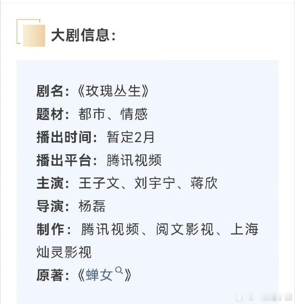 《玫瑰丛生》招商啦!暂定2月播出!燥侯刘宇宁饰演的小贝