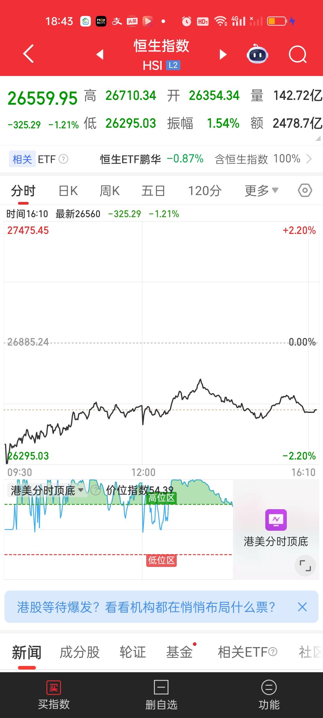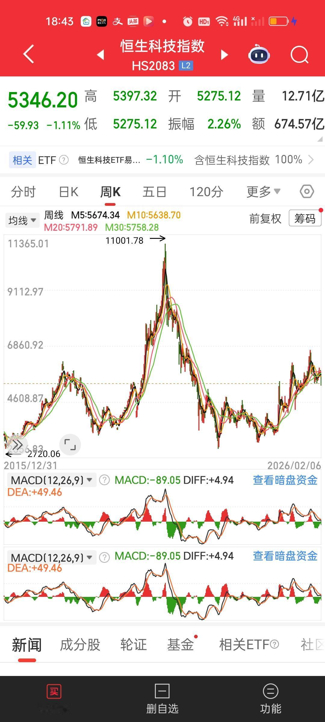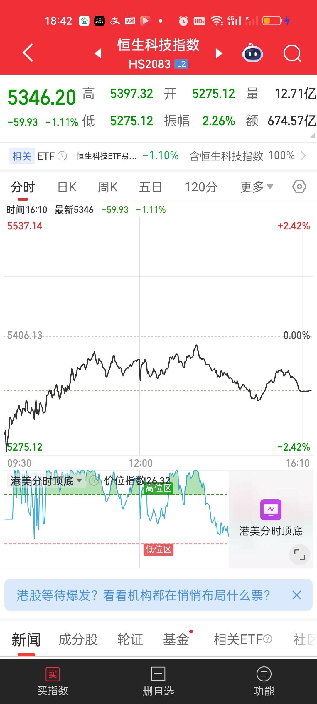 恒科这个地方做长线思维是完全不需要担心的,你就把它想象成一年定期存款。你今天买进去。一年以后才取出,你可以验证一下,一年后的今天收益是不是银行1年定期收益的10倍以上? 不用刻意担心明天下跌,后天下跌,大后天下跌,一直关注这个短期表现没有任何意义的啊,就问你是不是今天买了明天就准备清仓了? 今天最低点5275.12,前高是6715.46,5275.12/6715.46=0.7855,跌了21.45%。历史高点11001.78,5275.12/11001.78=0.4794,从历史高点下来跌了52.06%。