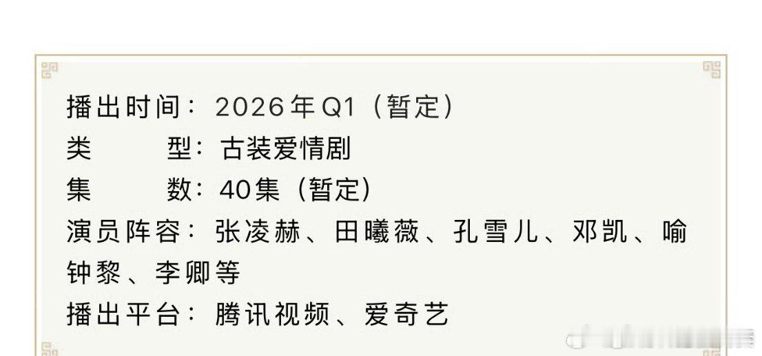 张凌赫《逐玉》播前招商 !可以开始期待谢征将军了