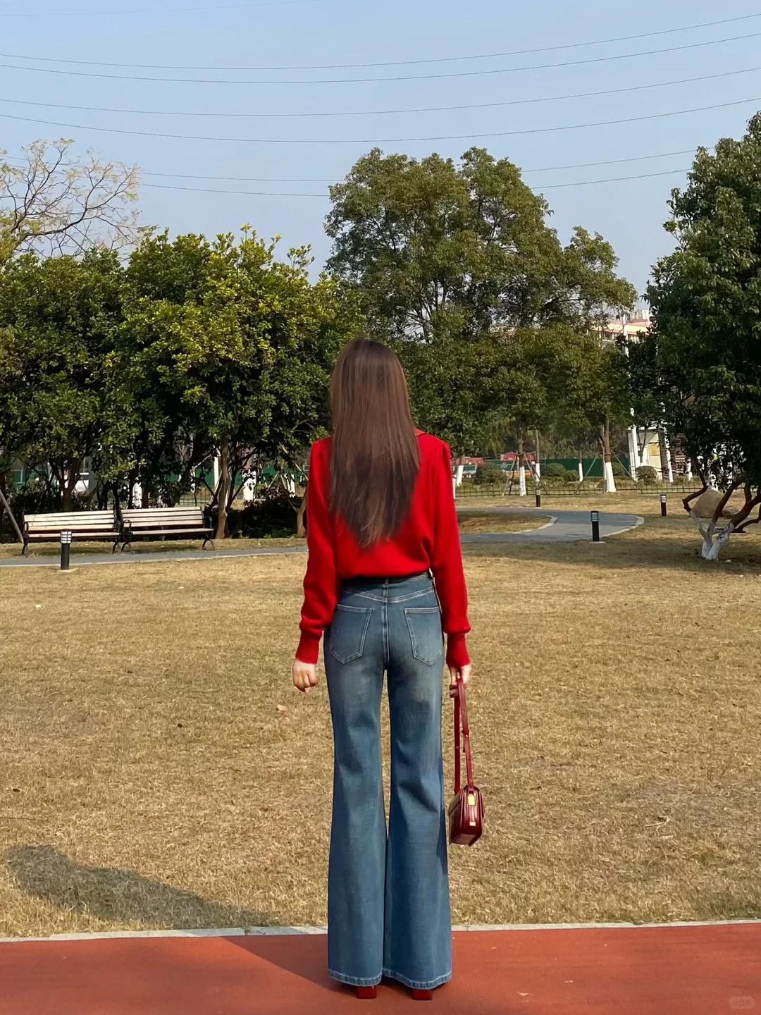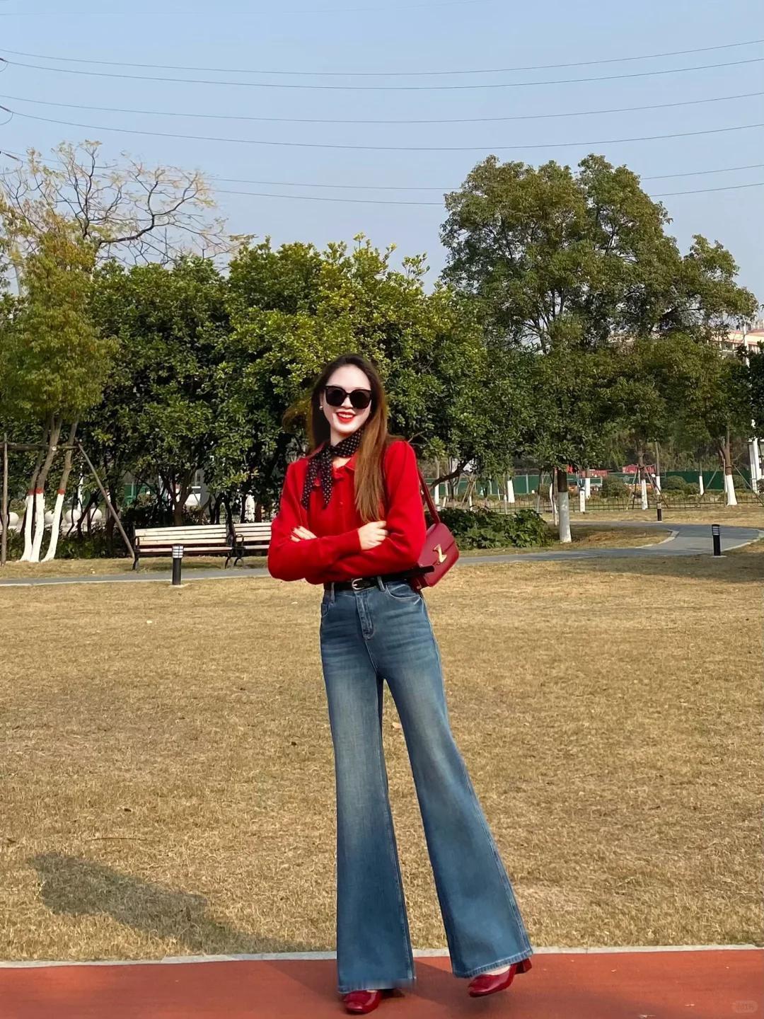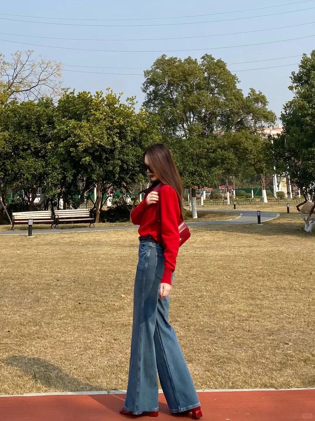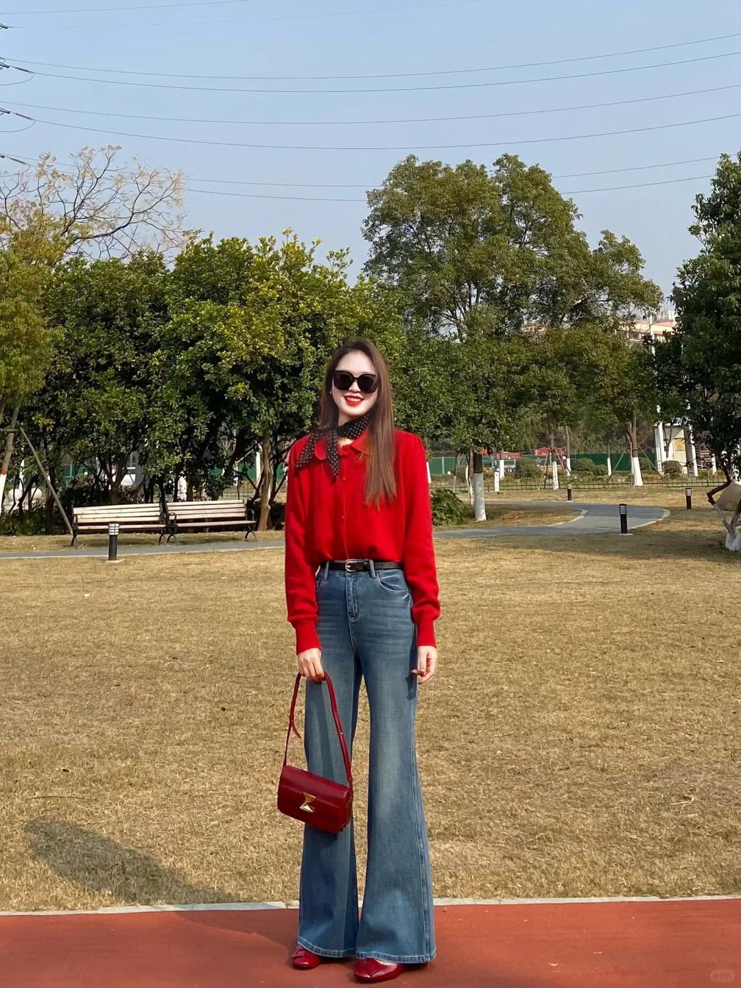 秋日穿搭指南红色毛衣裙+黑色靴子时尚又温暖中国风彩
