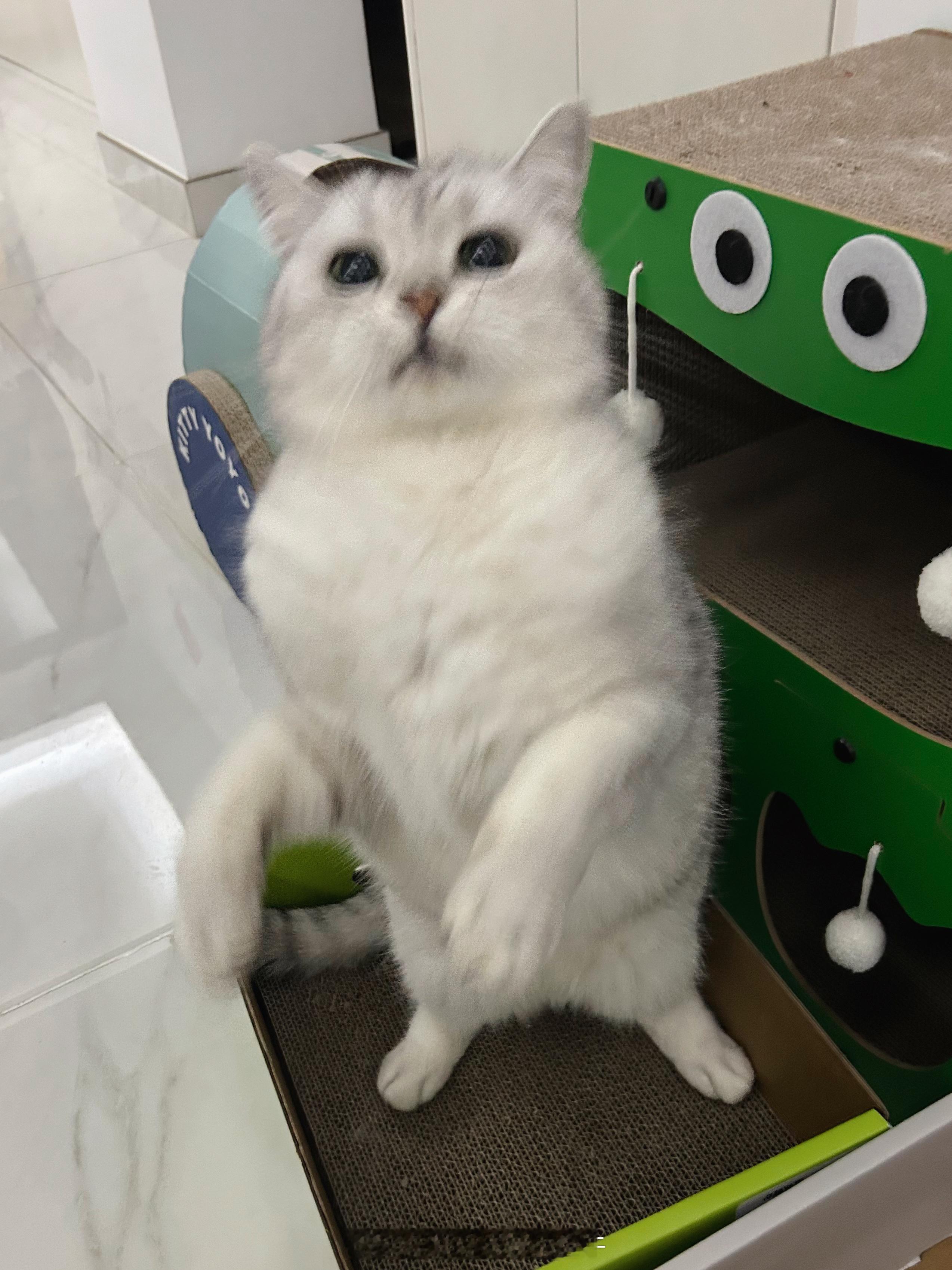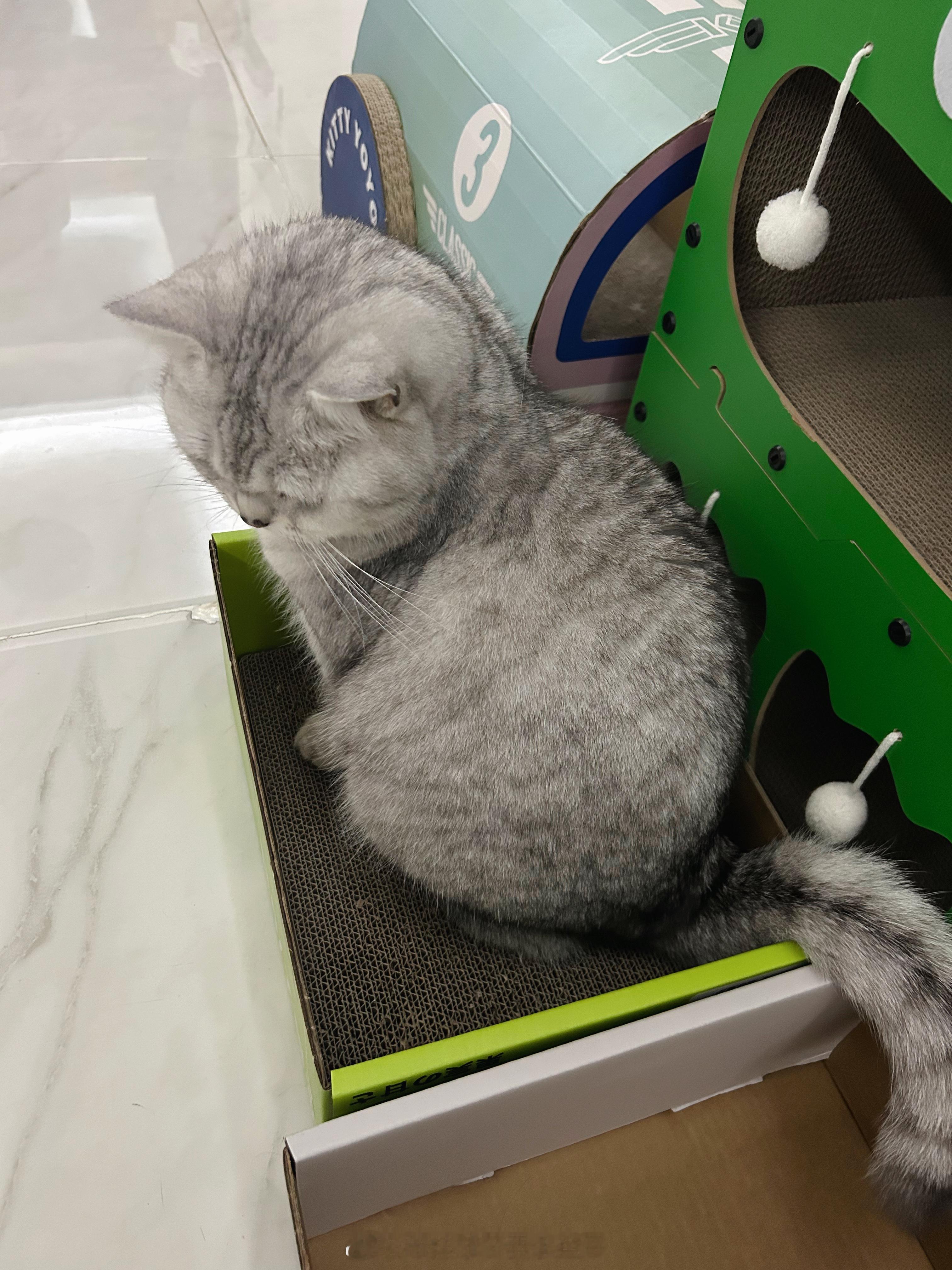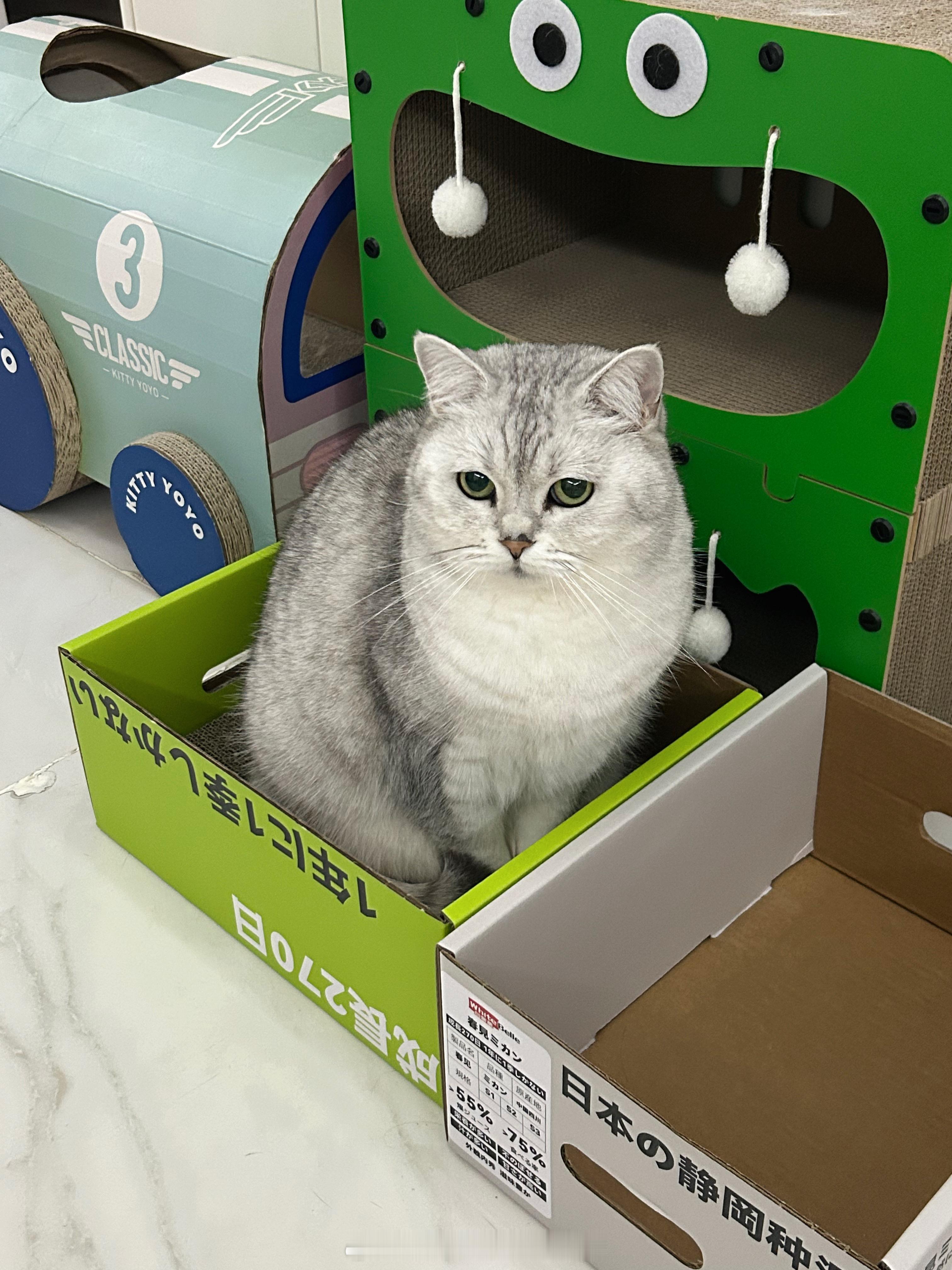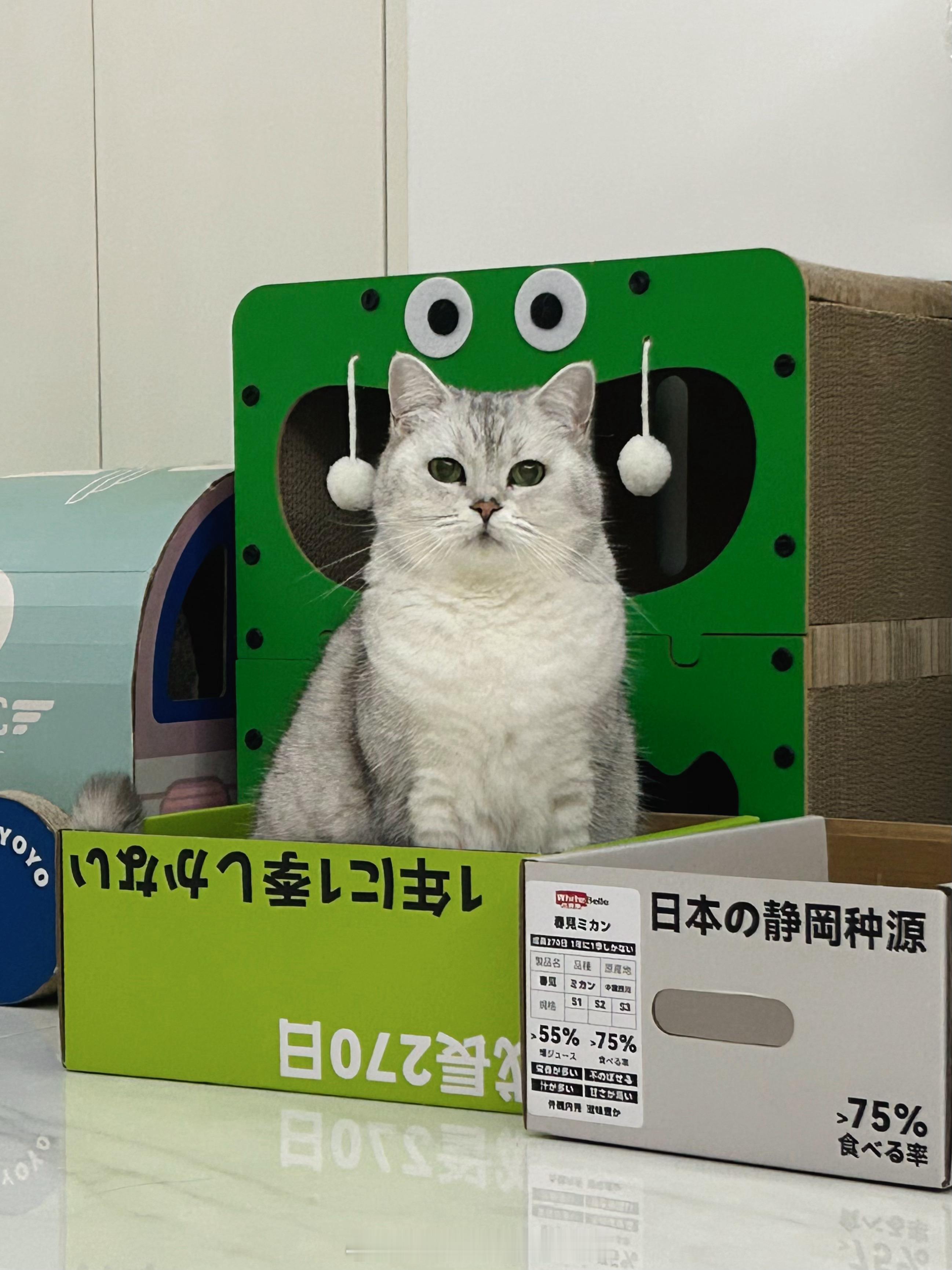 就知道他会喜欢这个不要钱的水果箱买了块纯素的猫抓板垫在了里面