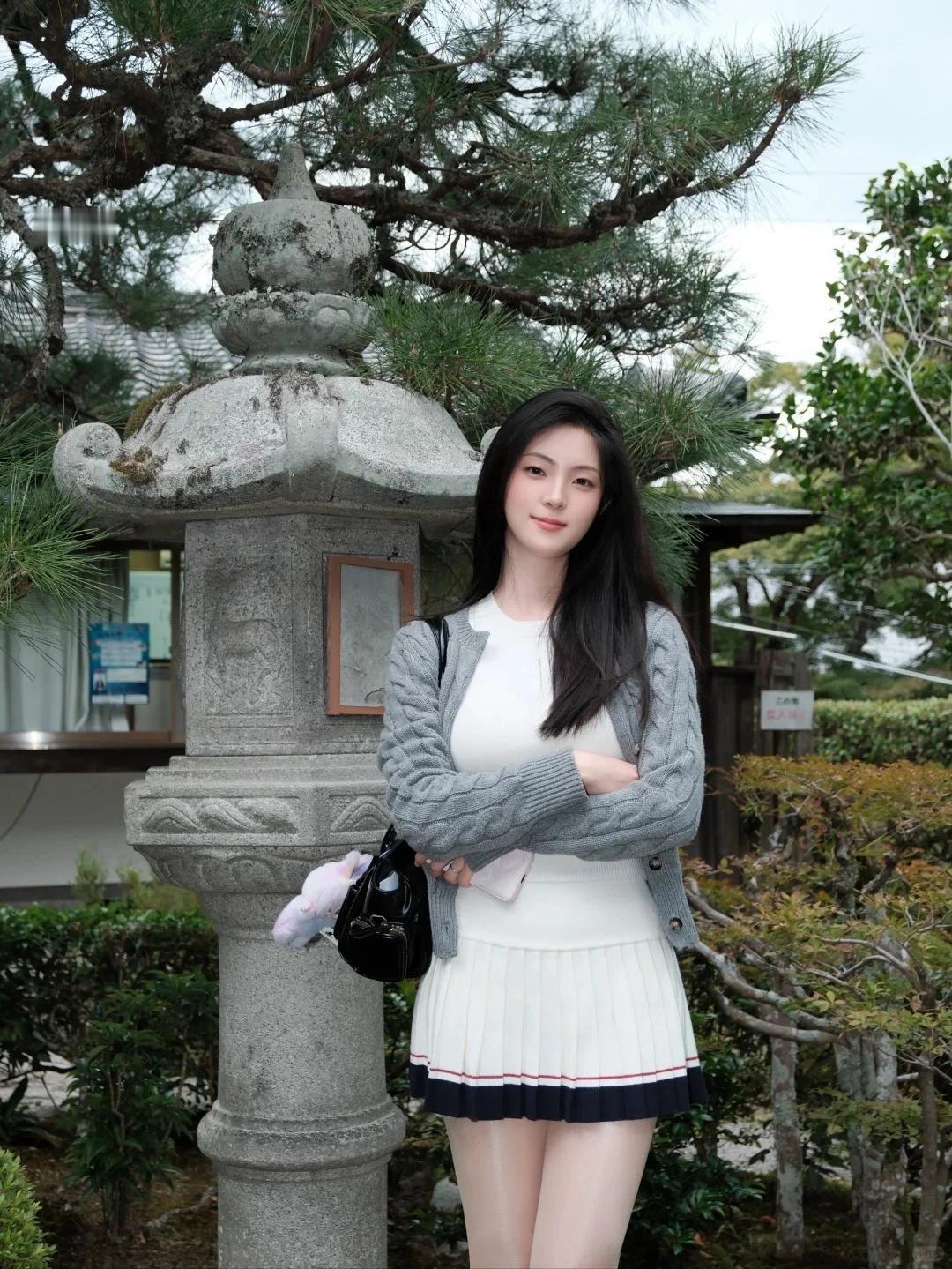 绒光里的温柔序章 米白色的绒线像是揉碎了初冬的阳光,织就成这件小香风套装,裹