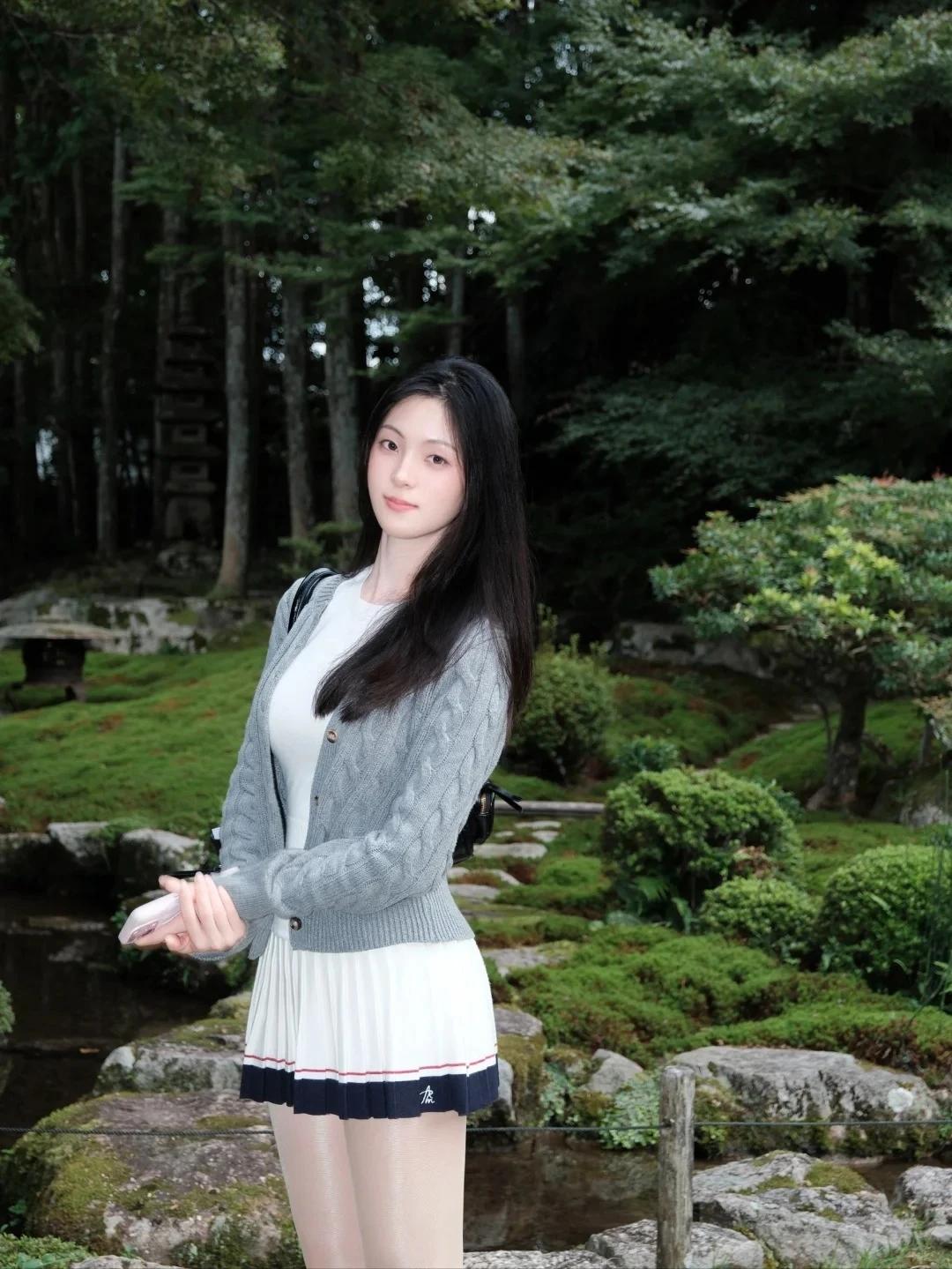 雪日轻暖 雪后的街市,是蓝天与白绒交织的温柔画布。 她裹着那件浅灰色的羽