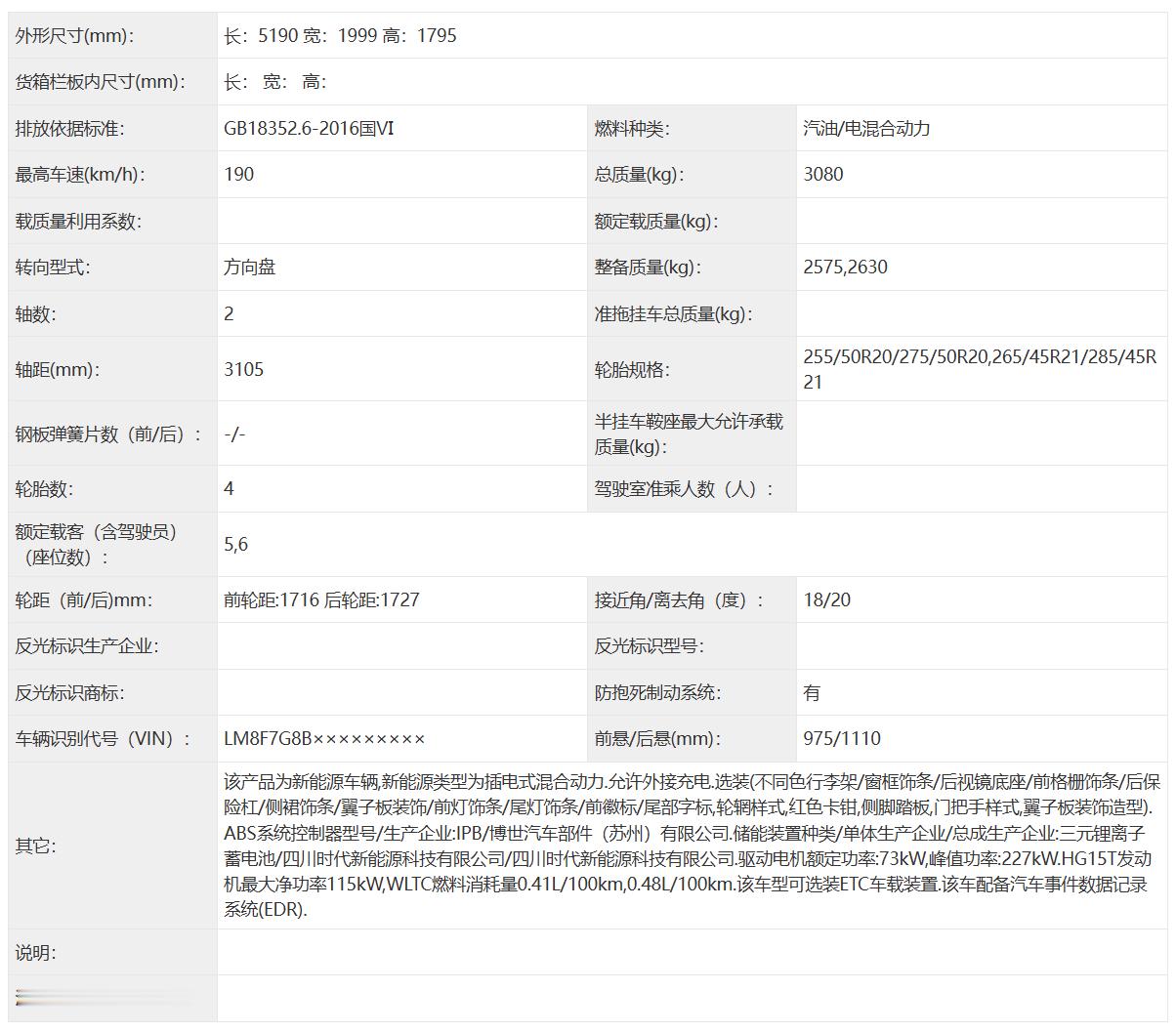 魏牌旗舰插混大型SUV上了工信部的目录,5299×2025×1825mm、31