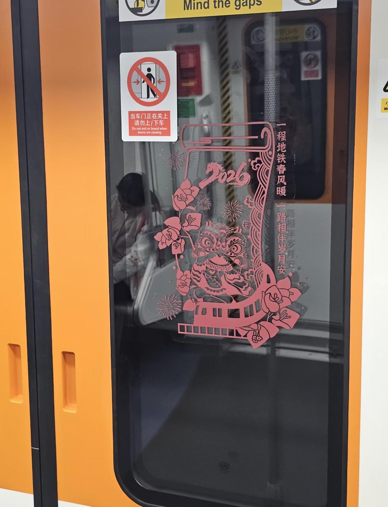 还得是深圳,过年地铁都贴窗花 地铁里的人间万象 贴春联 轨道交通 地铁 深圳地铁 春运