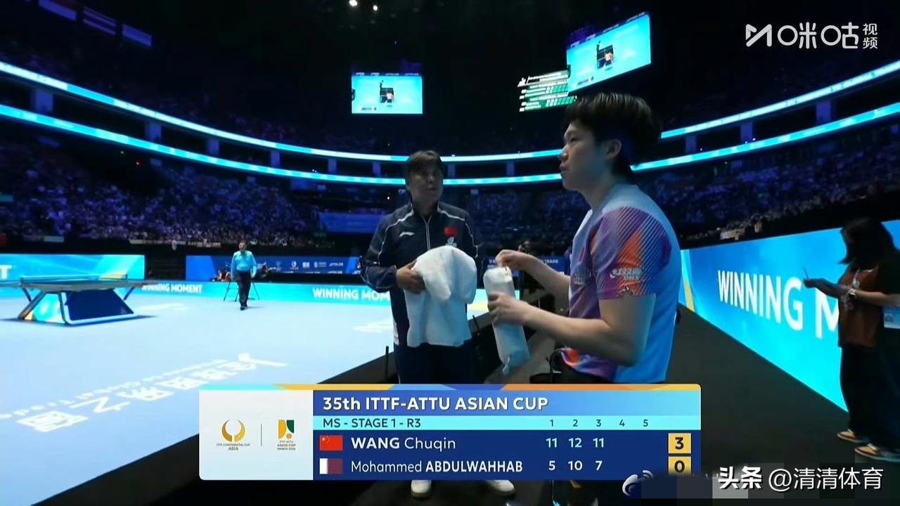 海口亚洲杯男单小组赛第1组收官:王楚钦3-0横扫阿卜杜勒瓦哈卜,比分11-5、11-10、11-7;帕尔3-2险胜冯翊新,比分11-8、5-11、11-6、5-11、11-9 。最终王楚钦三战全胜小组第一,帕尔第二晋级16强;冯翊新一胜两负出局,确实可惜 。