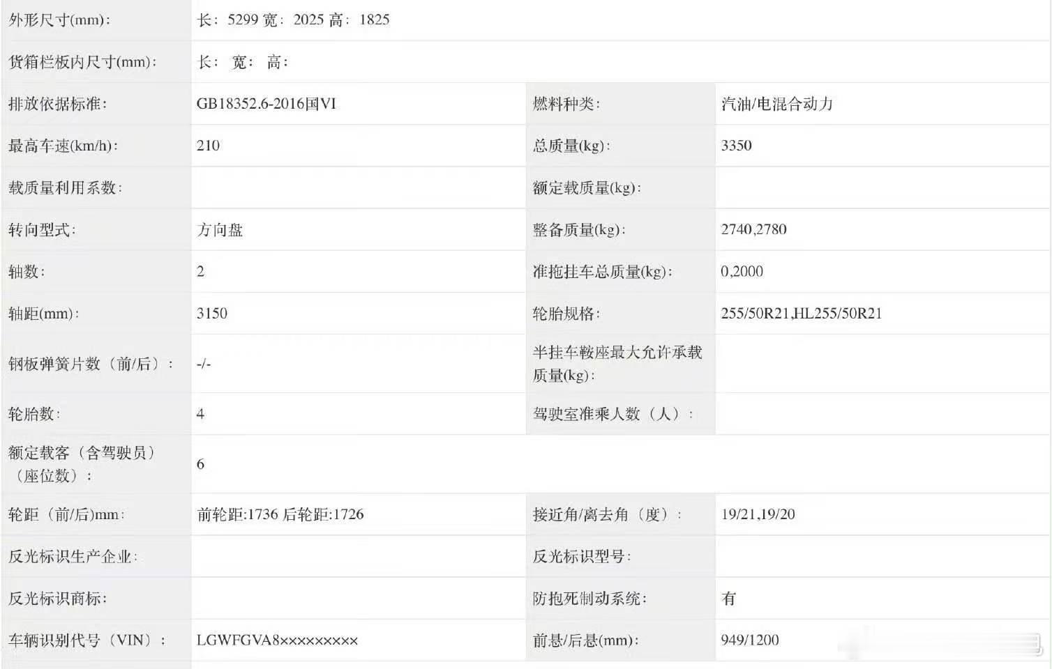 魏牌旗舰插混大型SUV上了工信部的目录,5299×2025×1825mm、31