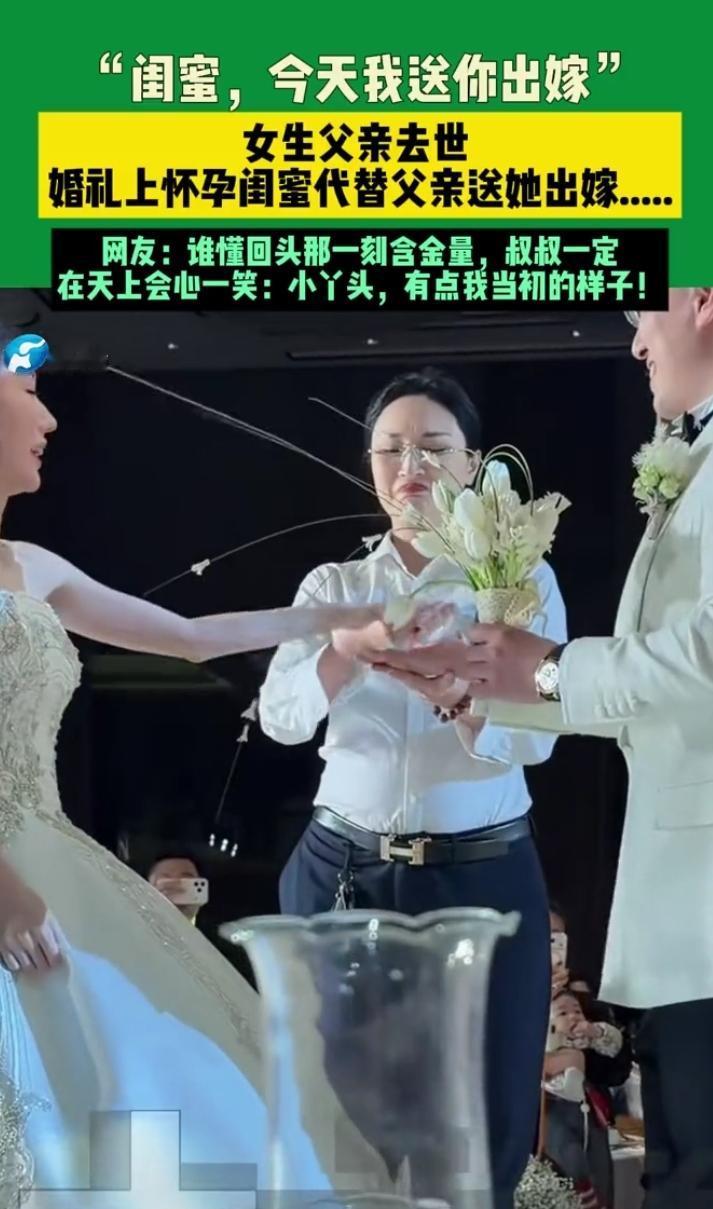 感人至深的一幕:父亲去世,闺蜜代父送嫁,网友:那一刻的含金量,比金子还值! 2月5日,湖南的一场婚礼,成了朋友圈热议的“年度感动大片”。新娘眼含泪水,身穿婚纱,却少了一个重要的身影——她的父亲。谁也没想到,竟然是她最信赖的闺蜜,站在了父亲的位置,替代父亲将她送出门。 这个场景,犹如电影里才会出现的桥段,却真实发生在生活中。新娘的父亲早早离开人世,留下一份无尽的遗憾。婚礼当天,闺蜜没有犹豫,穿上了父亲的礼服,站在了那个熟悉的“父亲”位置上。她那双充满温柔的眼睛,似乎在说:“我会陪你走完这一生,直到永远。”这一刻,感动得网友们泪流满面。 网友评论:“谁懂那一瞬间的含金量?那不只是感动,更是深深的责任和爱。”有人调侃:“叔叔在天上一定在微笑吧,觉得自己的女儿终于圆满了。”也有人说:“这不只是婚礼,更像是一个父亲对女儿最深的祝福,一份跨越生死的爱。” 生活中,总有人用最平凡的行动,诠释着最不平凡的情感。父亲的爱,也许藏在一句叮嘱、一份沉默中;而在那一刻,闺蜜的举动,成为了最温暖的注脚。或许,没有血缘关系,但那份“父女之情”,比任何金钱都珍贵。 这场婚礼,让我们看到了人性最柔软的一面,也让我们相信:爱,从未因距离或死亡而减退。它藏在每一个细节里,等待着我们用心去感知。或许,我们每个人心中都藏着一个“闺蜜”或“父亲”的角色,只要用心,就能在关键时刻,成为最温暖的那个人。 你有没有遇到过这样的瞬间?那种瞬间,能让你瞬间泪流满面,却也让你心头一暖。留言告诉我吧,让我们一起为这份真情点赞!出嫁感人一幕